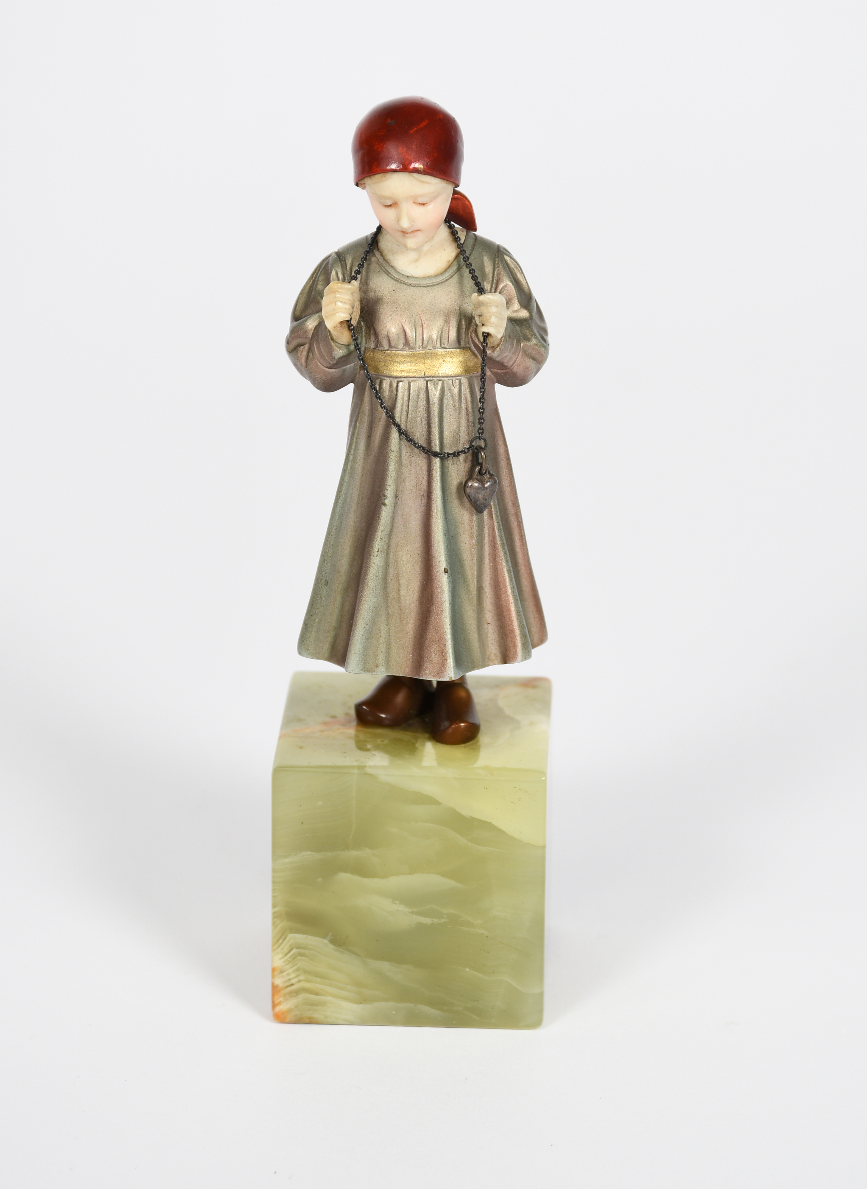 a cold painted bronze and ivory figure, on green onyx square base