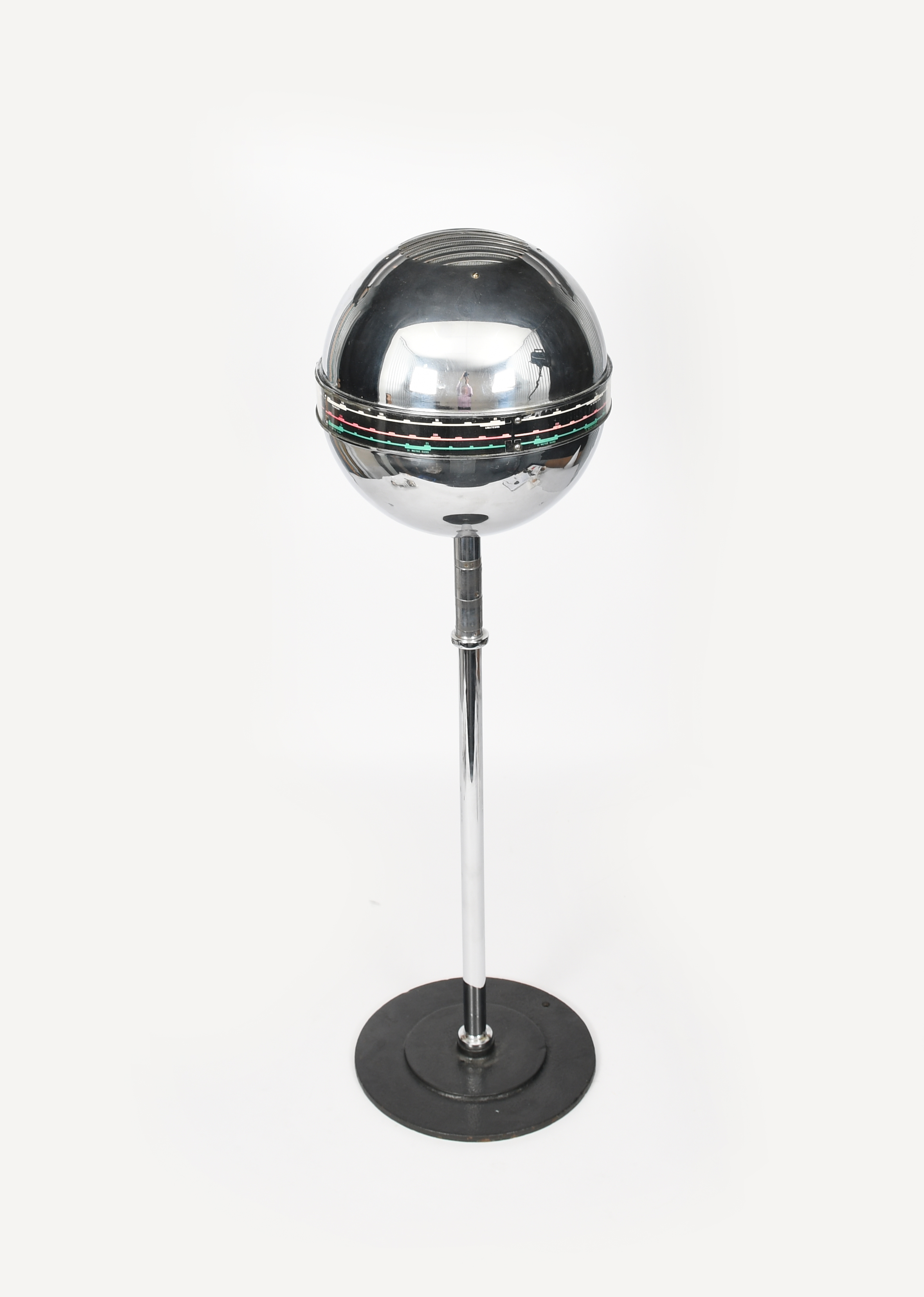 A modernist Emor chrome radio ball on stand