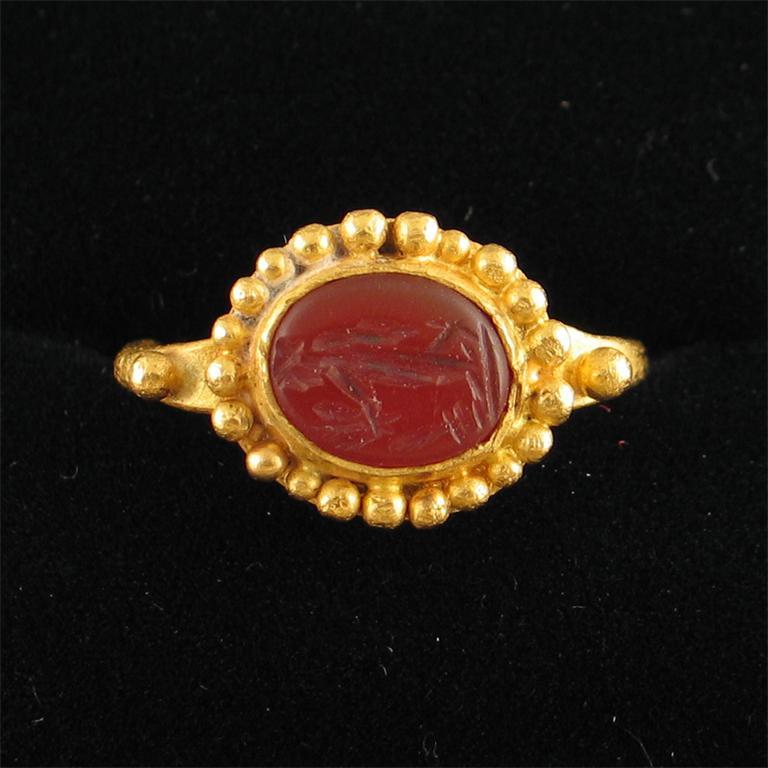 A Roman intaglio ring, the oval cornelian intaglio in a 19th Century gold mount.