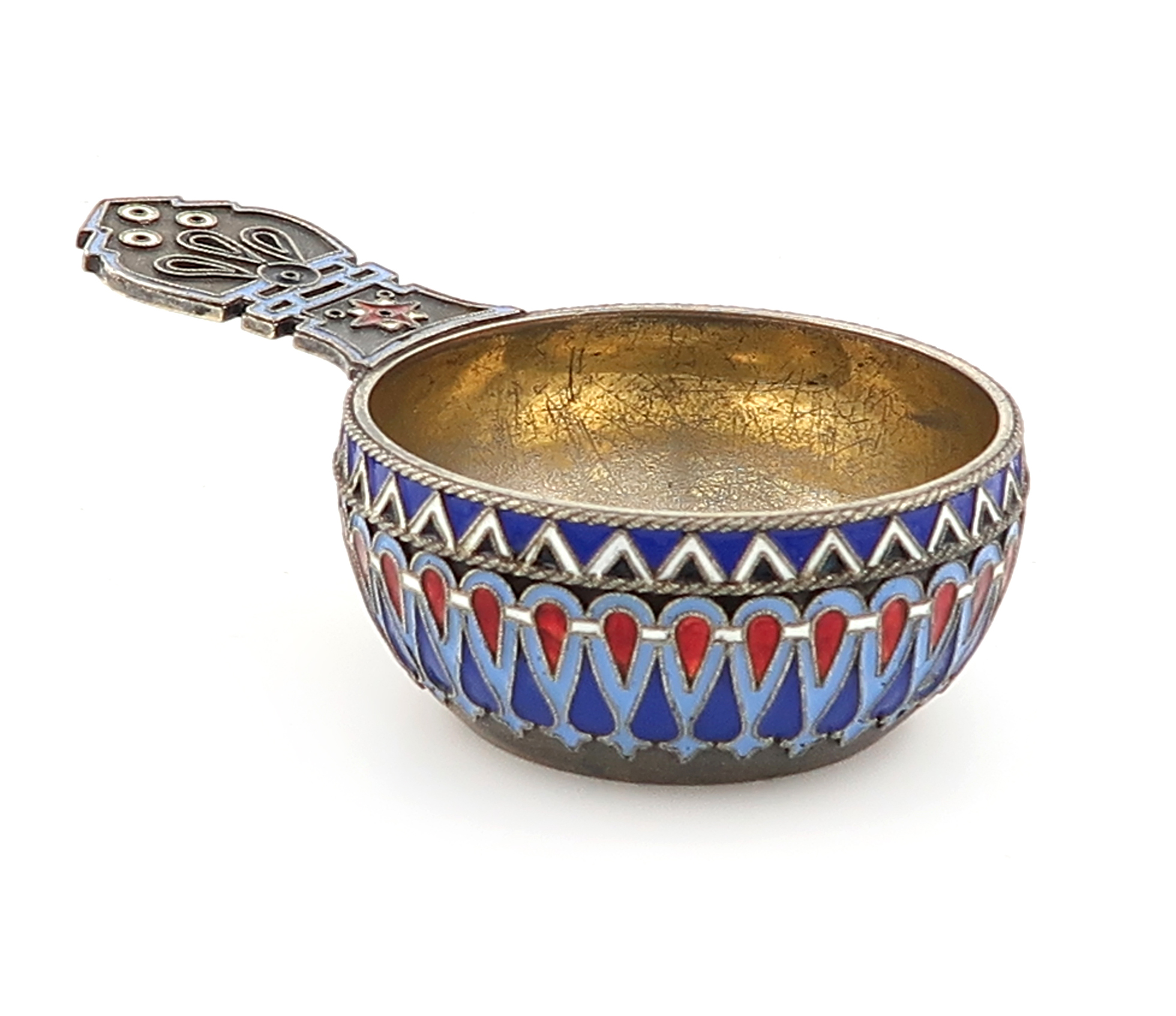 A late 19th century Russian silver-gilt and enamel kovsch,