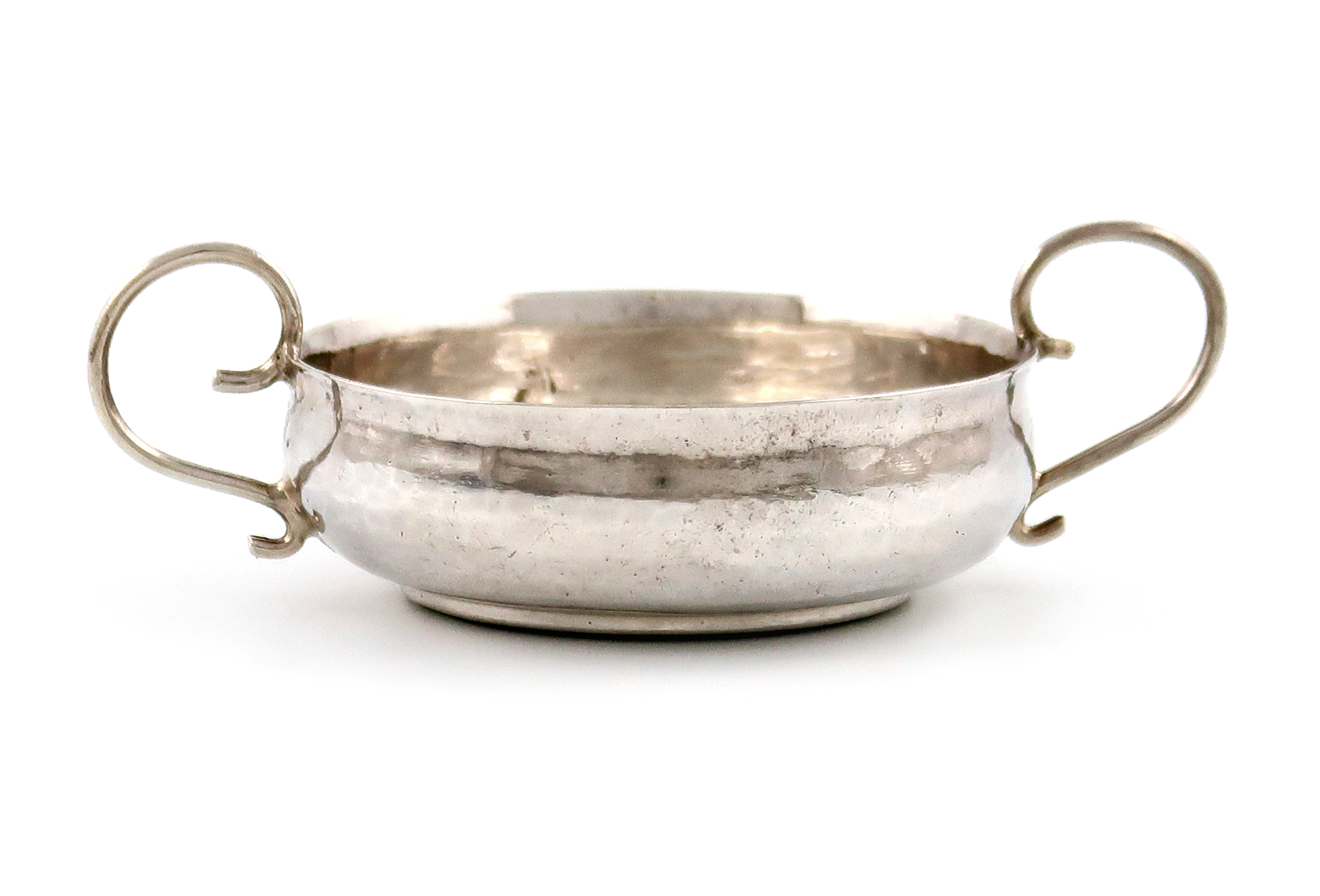 plain circular form, scroll handles, length handle to handle 8.5cm, approx. weight 0.7oz.