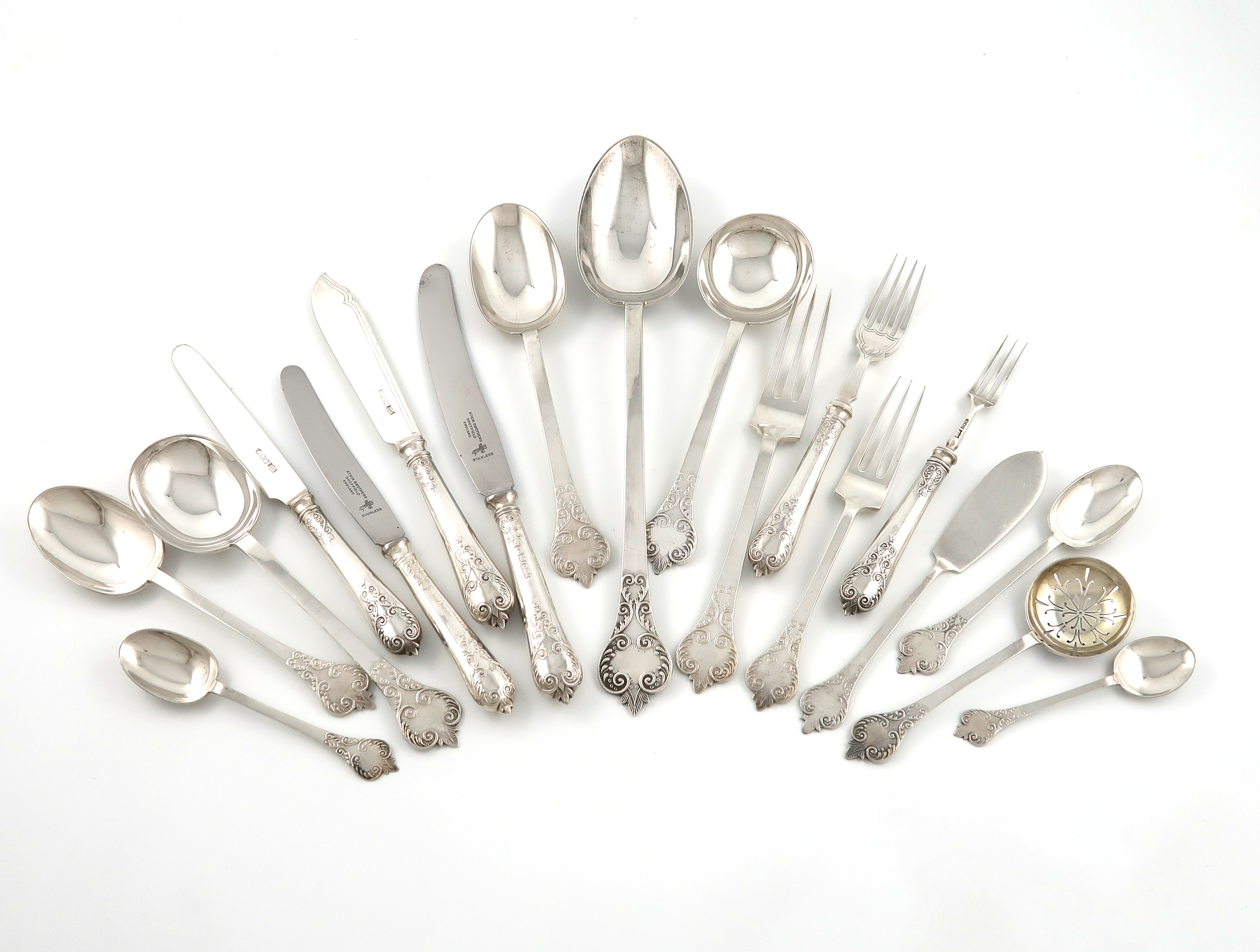 A silver Lace-back Trefid pattern canteen for twelve,