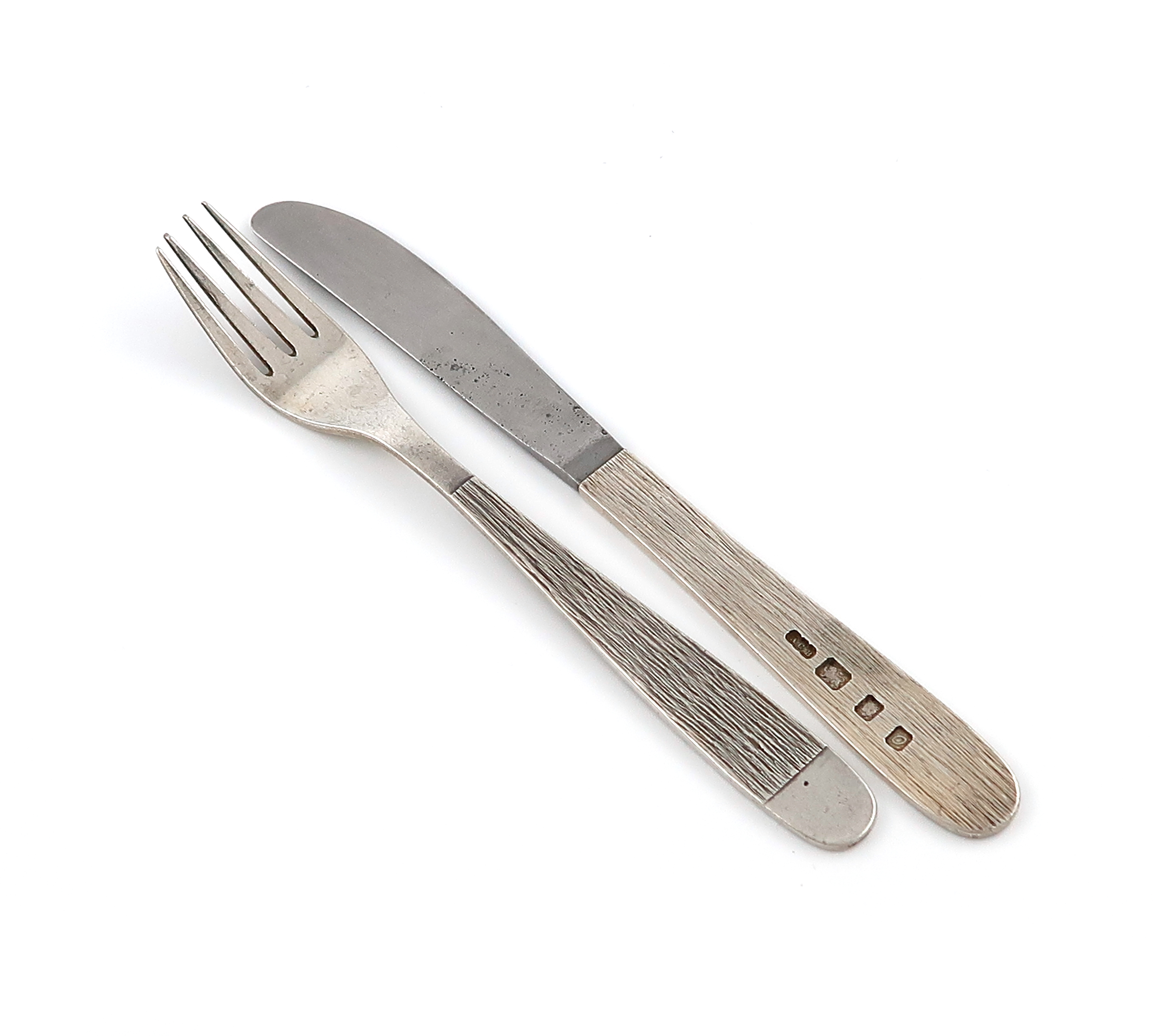 the handles with textured decoration, the knife with a stainless steel blade, approx. weighable 3oz. (2)