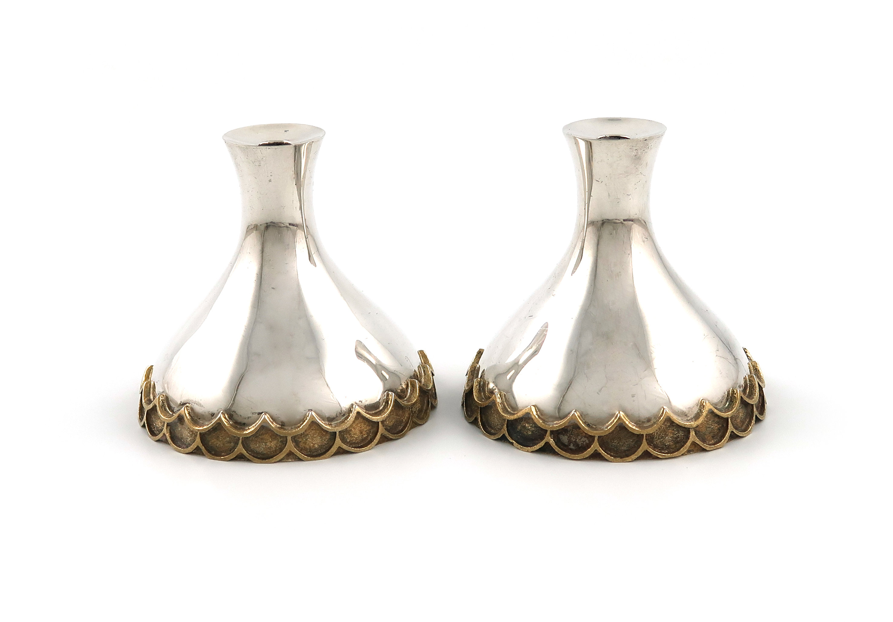 By Grant MacDonald, a pair of modern parcel-gilt silver candlesticks,
