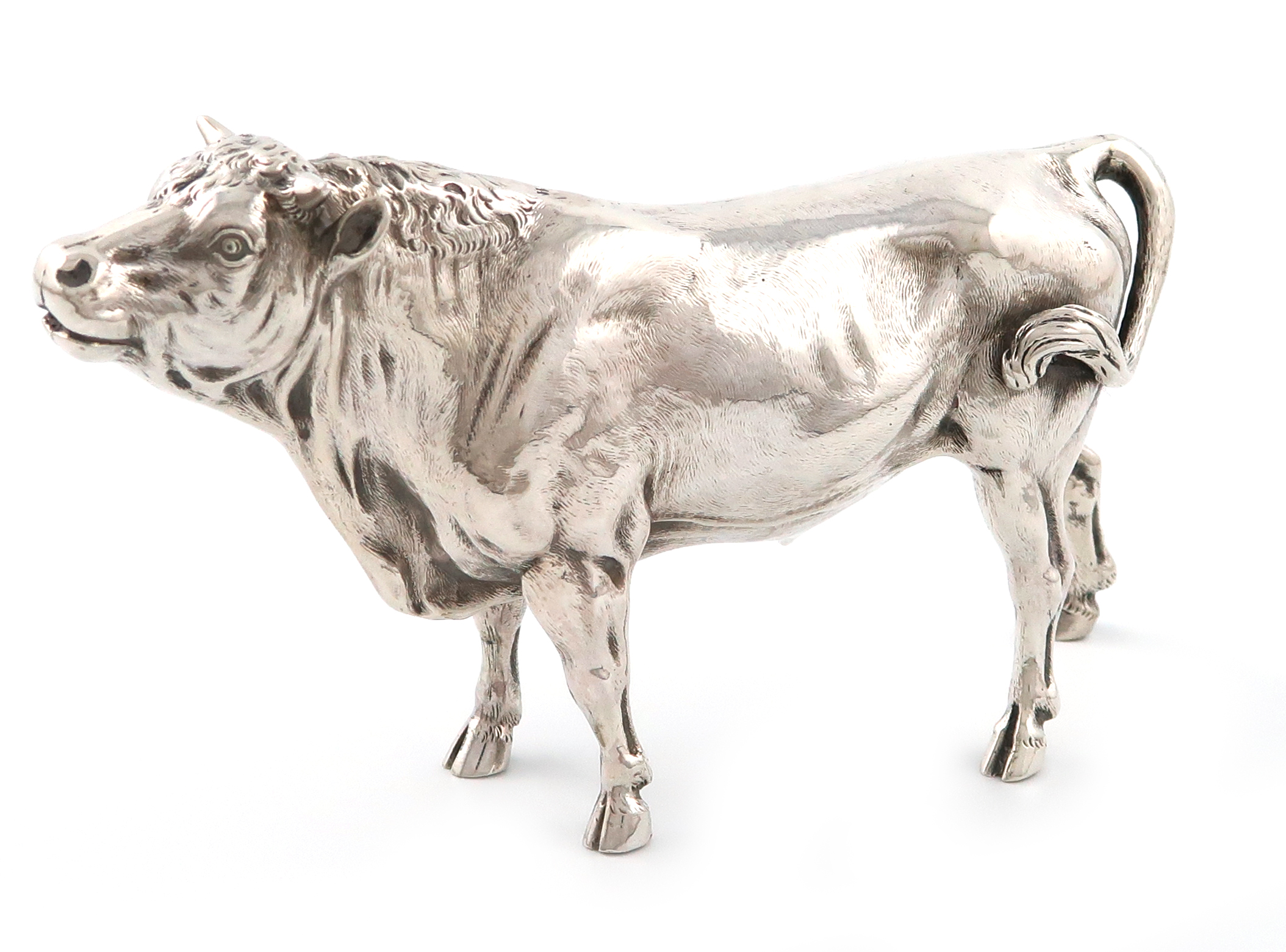 A Victorian silver model of a bull,