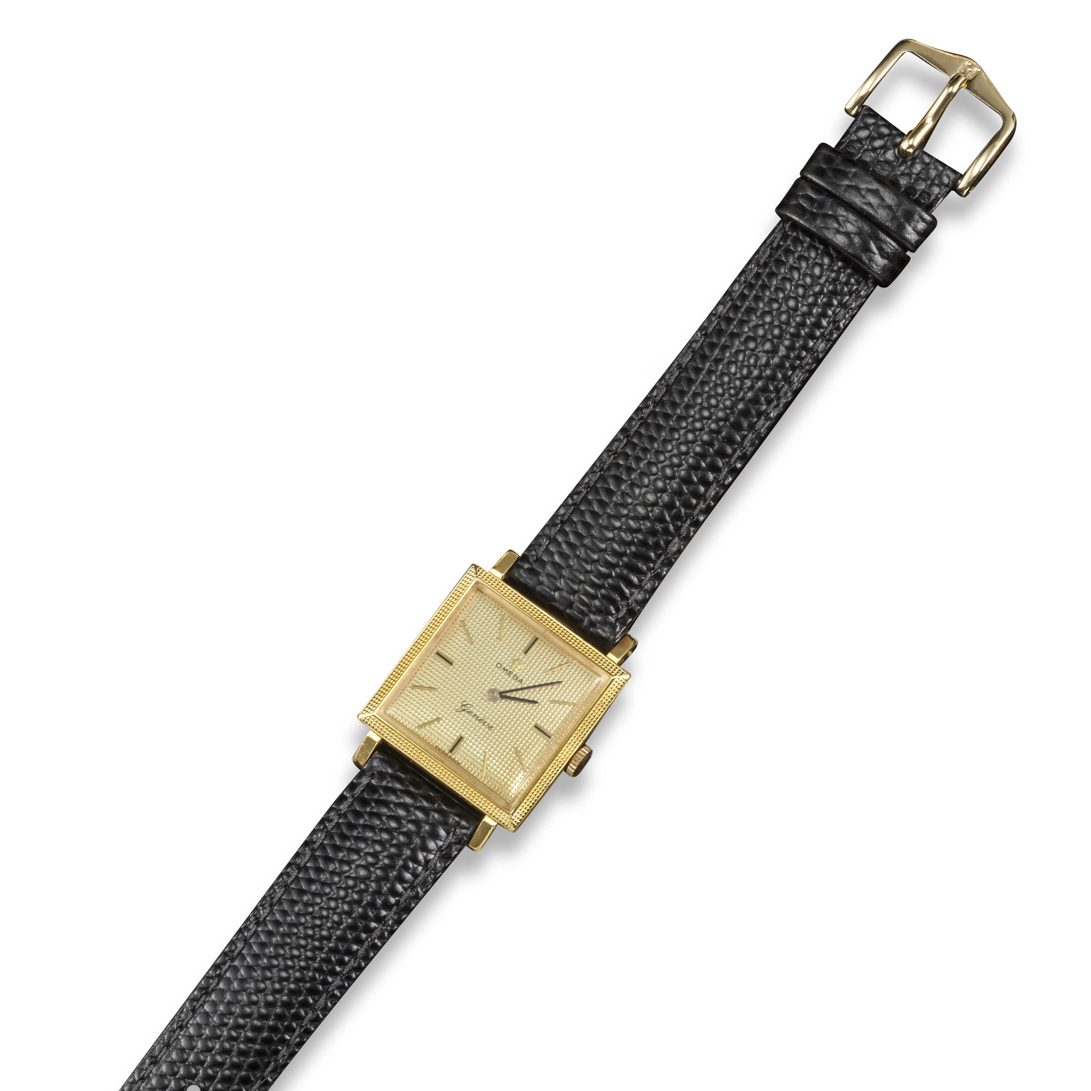 A square gold wristwatch by Omega