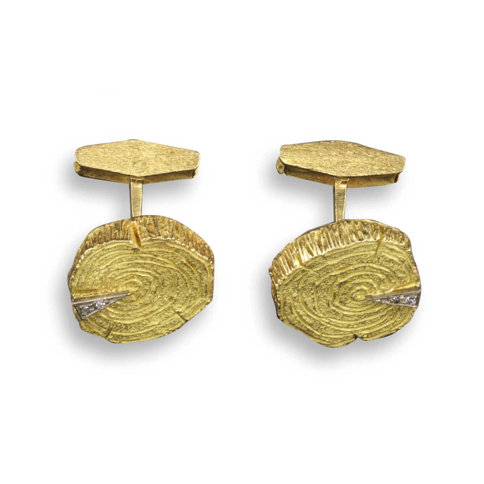 A pair of gold and diamond wooden design cufflinks, set in 18ct yellow gold, maker's mark P&BH and London import marks for 1997