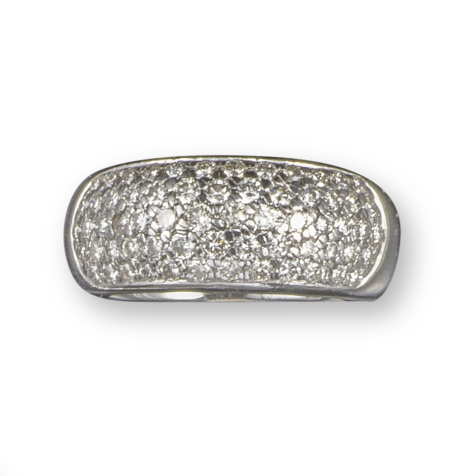 A diamond bombé ring, the tapered ring pavé set with circular-cut diamonds in white gold, size O 1/2