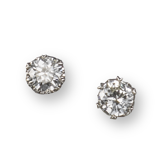 A pair of diamond stud earrings, the circular-cut diamonds weigh approximately 0.95cts in total, within diamond-set coronet mounts in platinum