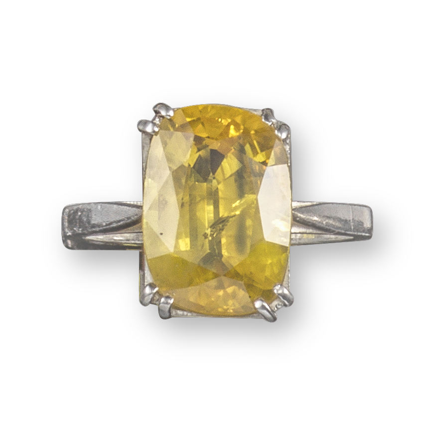 A yellow sapphire solitaire ring, set in platinum, size N 1/2