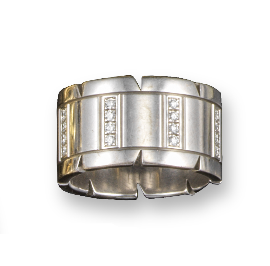 A white gold and diamond tank track ring by Cartier