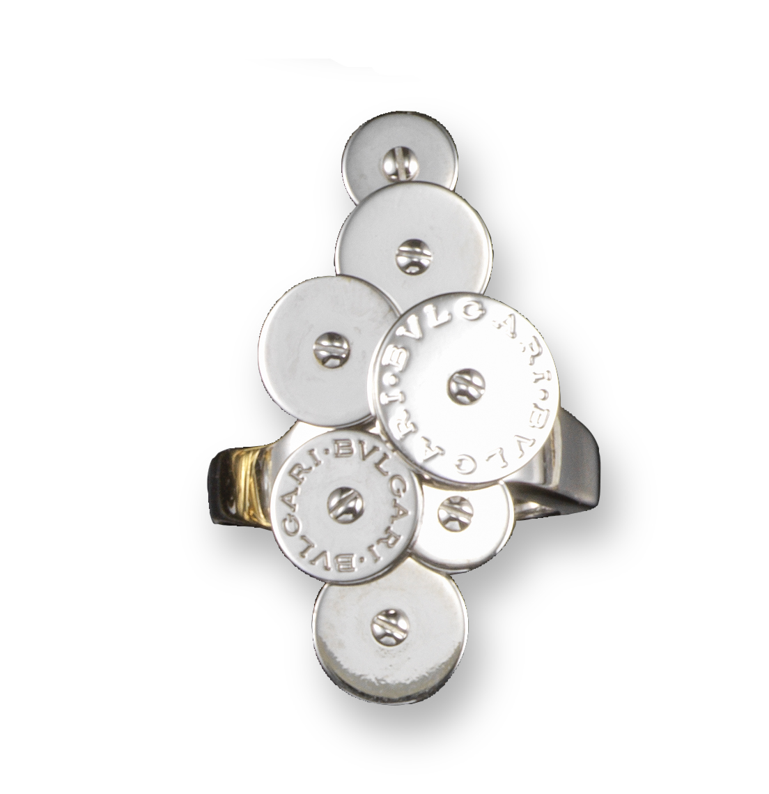 A Bulgari 'Cicladi' white gold ring, set with seven graduated spinning white gold disc, size J