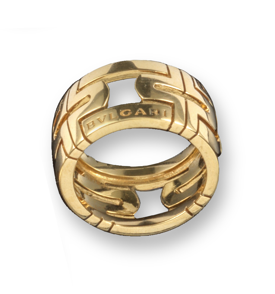 A yellow gold 'Parentesi' ring by Bulgari, the openwork geometric ring with engraved decoration and signed Bulgari, with Italian hallmarks, size K 1/2