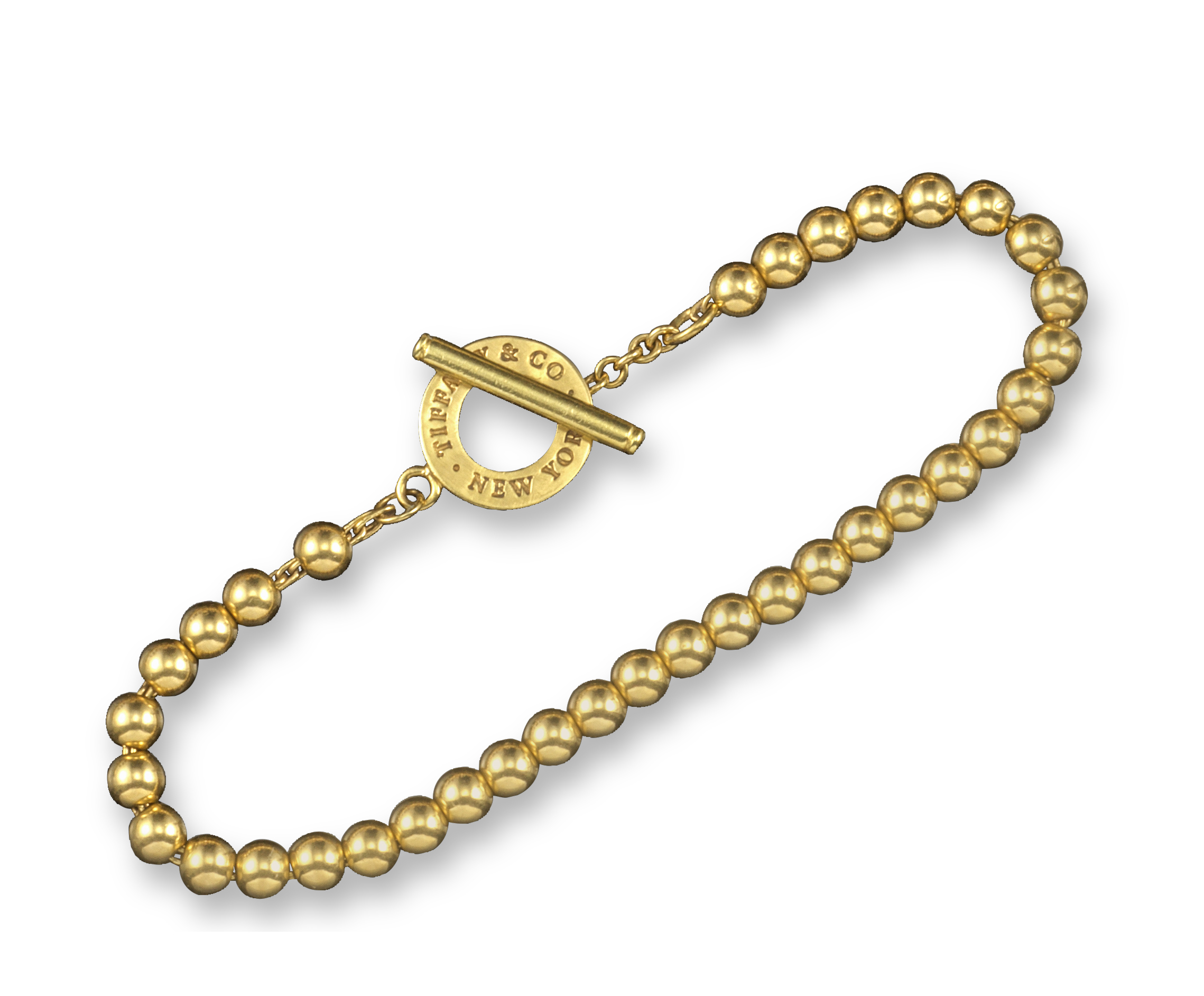 A yellow gold 'Bead Bracelet' by Tiffany & Co., the yellow gold beads measure 4mm approx., with a toggle clasp engraved 'Tiffany & Co. New York', signed and stamped 750, 16.5cm long