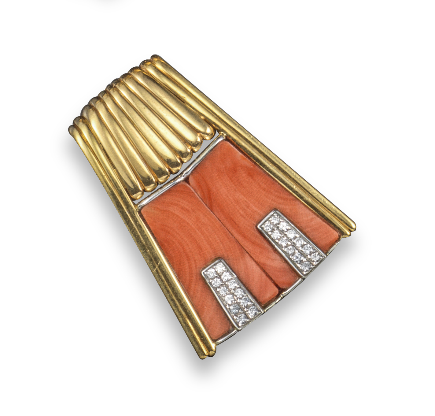 λ A mid 20th century coral and diamond clip by Friedrich Binder GmbH & Co