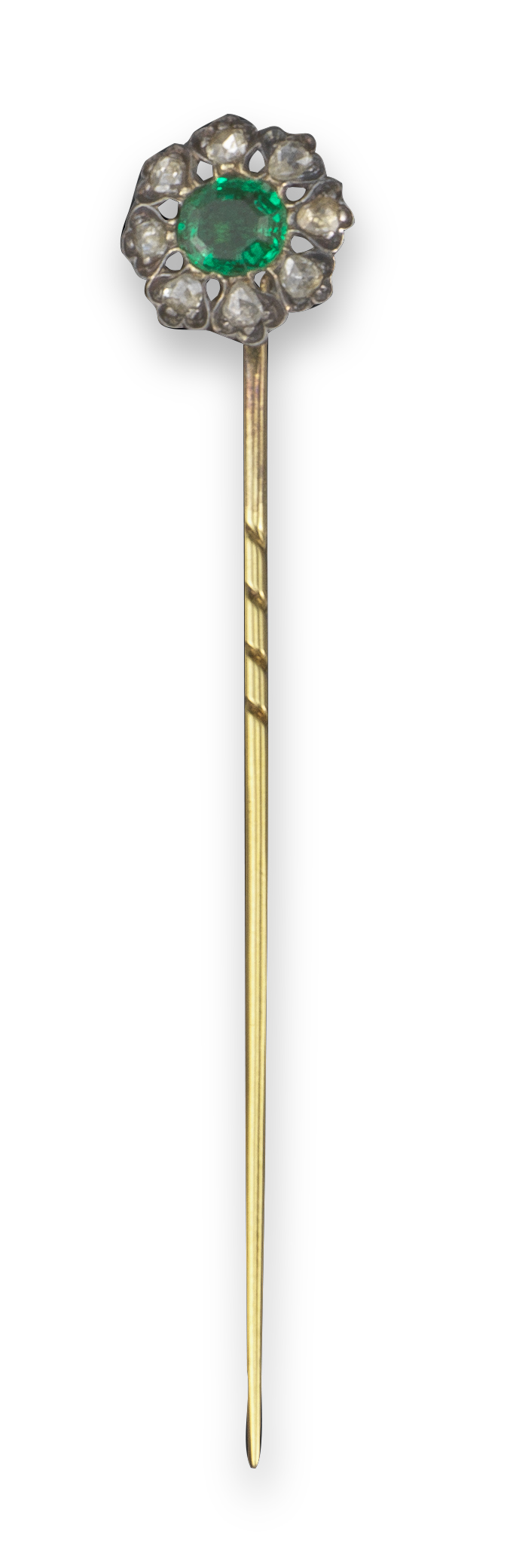 An early 19th century emerald and diamond stick pin