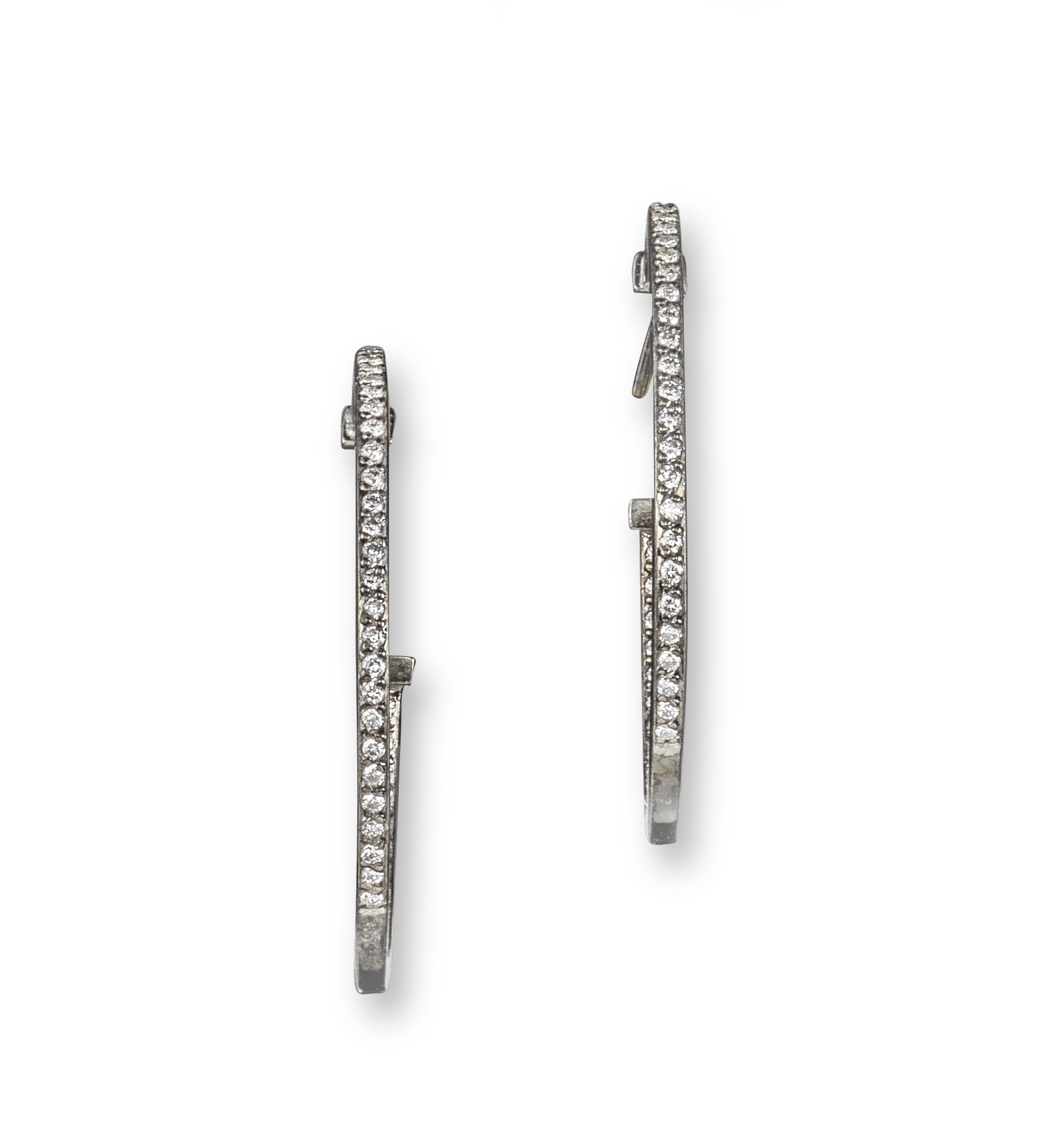 A pair of diamond hoop earrings, set with circular-cut diamonds in black gold, 3.3cm inner diameter, post fittings
