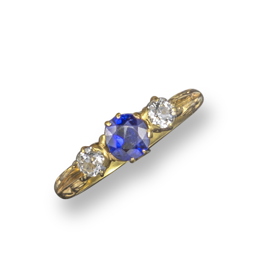 A late 19th century sapphire and diamond three-stone ring