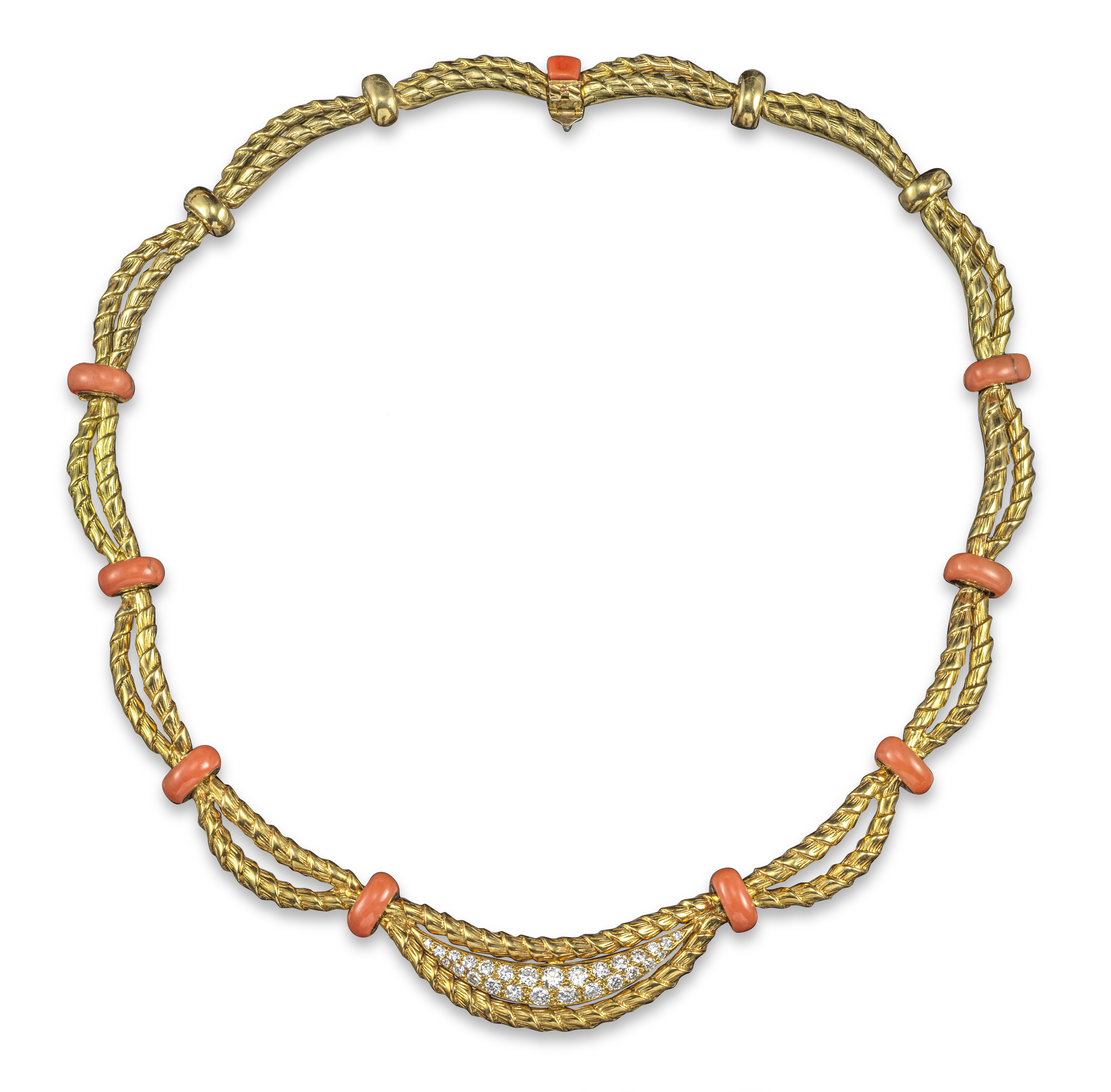 λ A French coral and diamond gold necklace
