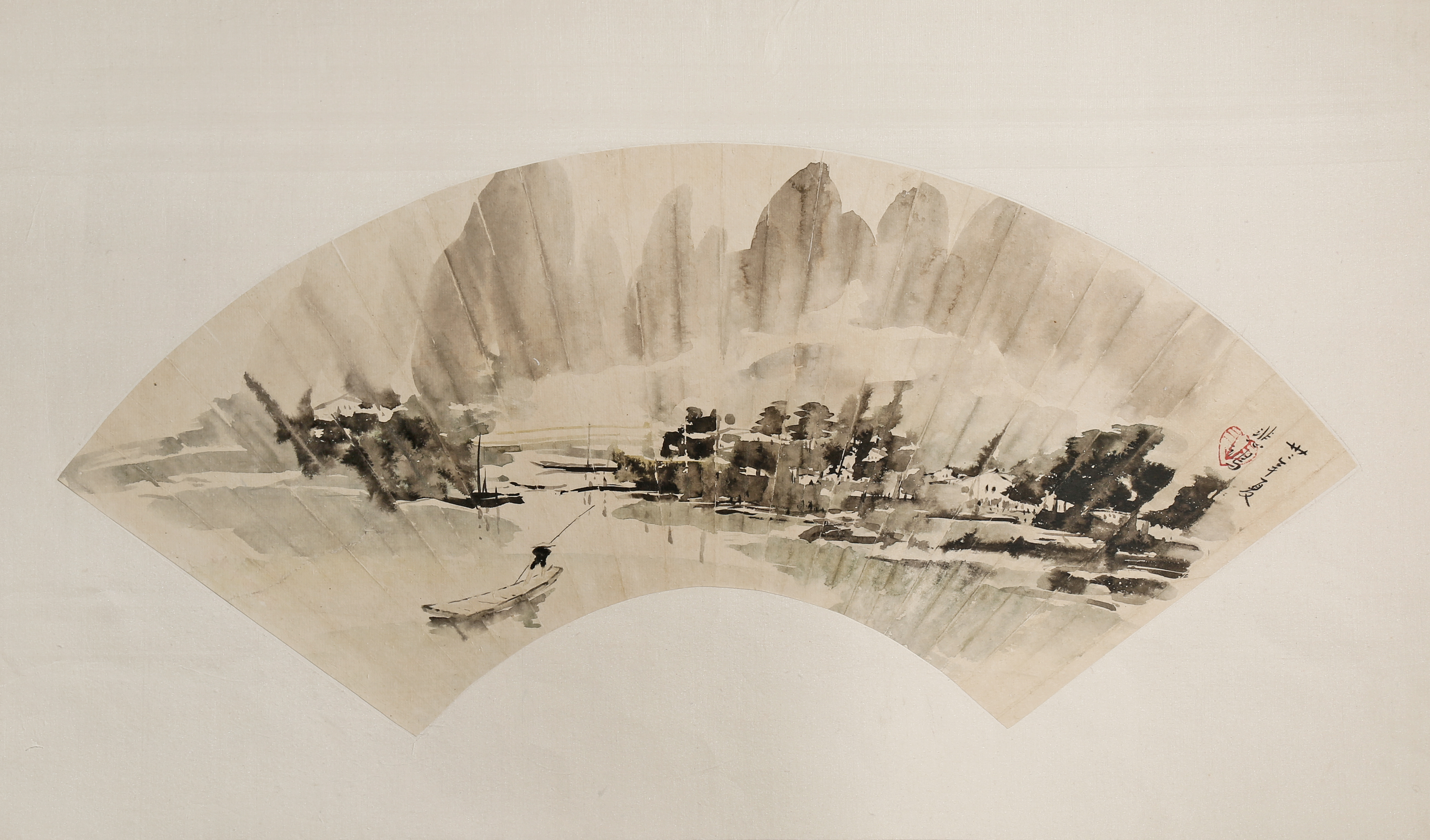 ATTRIBUTED TO XU BEIHONG LANDSCAPE Three Chinese fan paintings