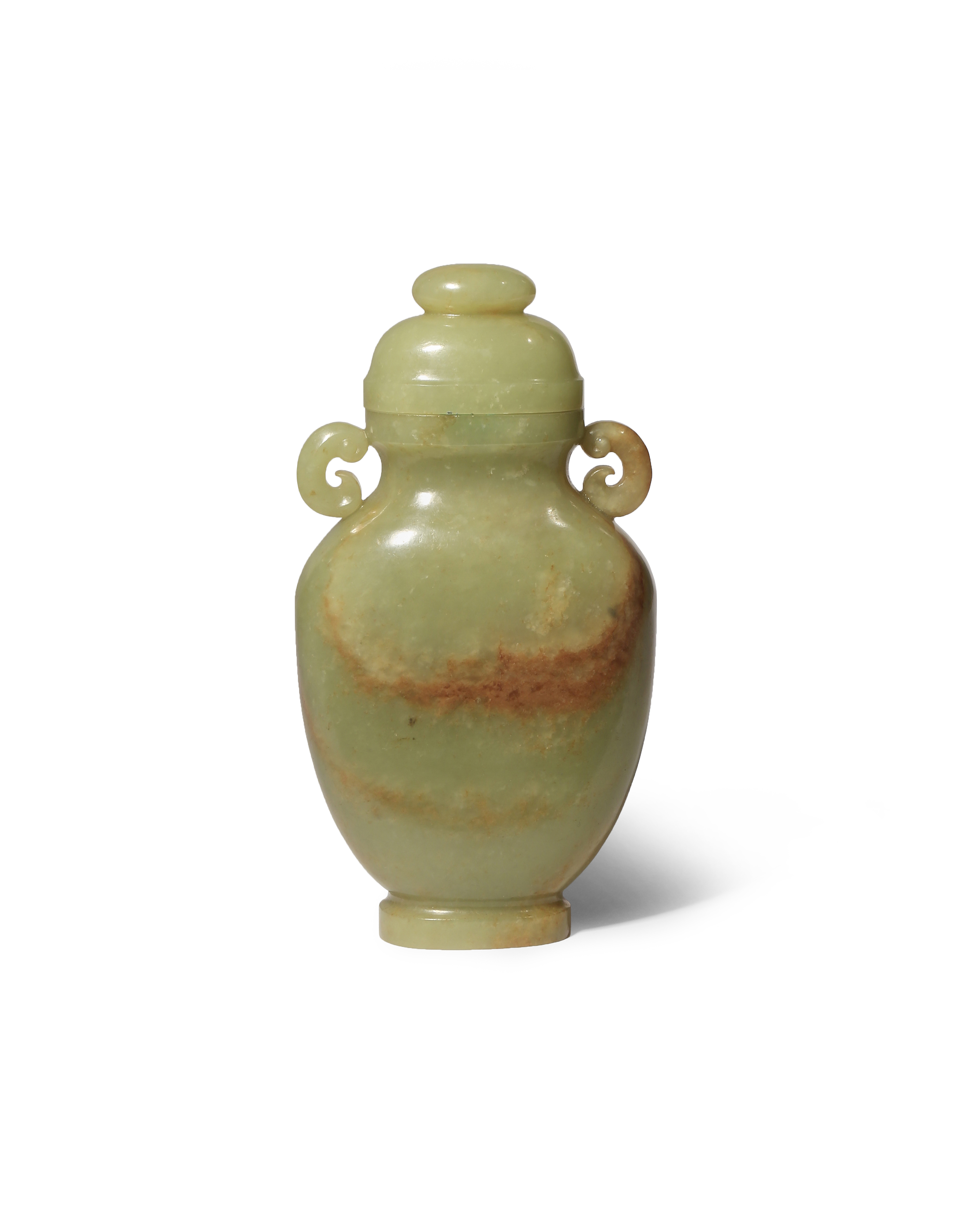 A CHINESE YELLOW JADE VASE AND COVER QING DYNASTY The flattened baluster-shaped body with...