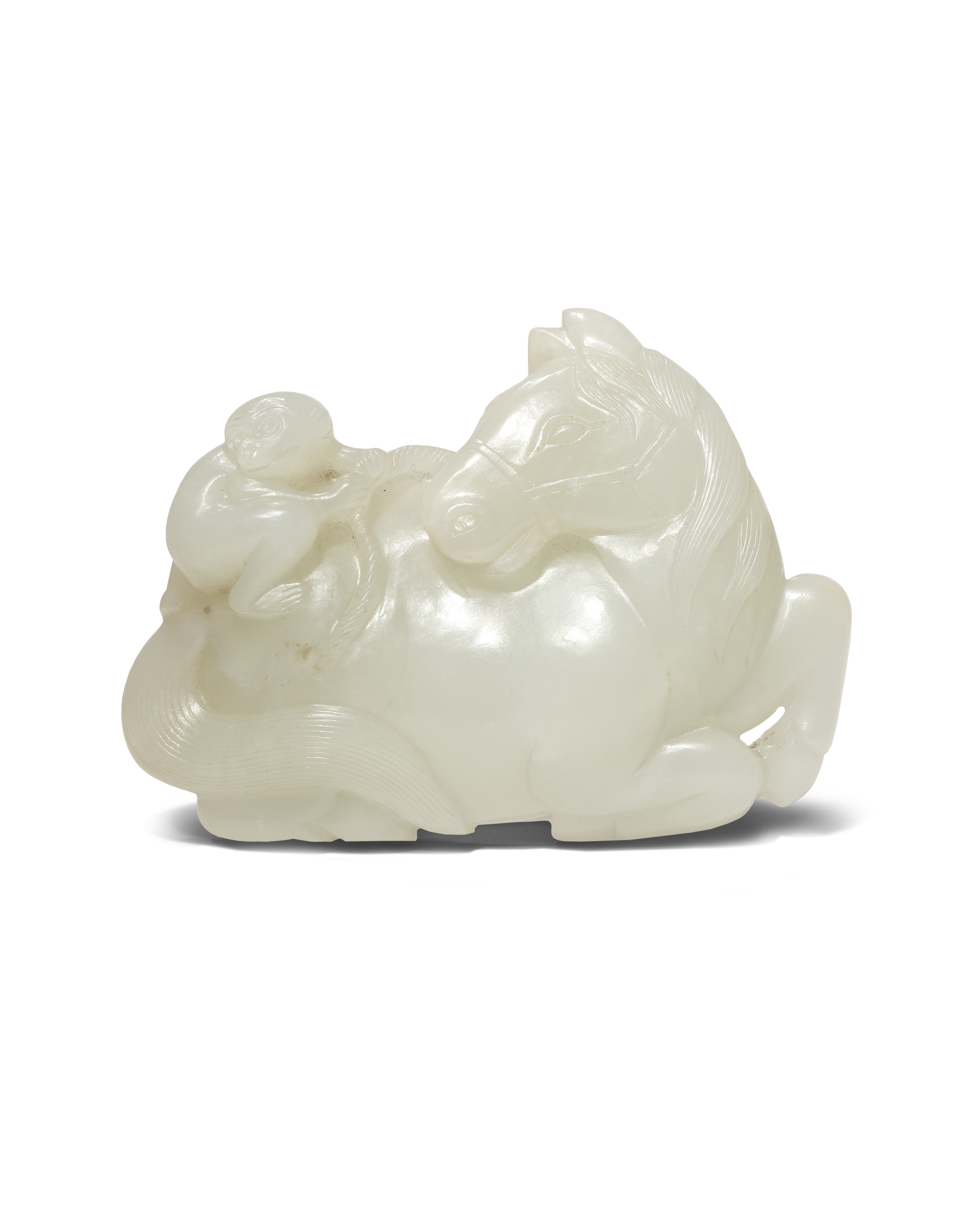 The motif of a monkey, hou, on the back of a horse, ma, represents the rebus ma shang feng hou, which may be translated as 'may you immediately be promoted to a high rank of office.' Such pieces would have been used to pass on good wishes to aspiring officials.