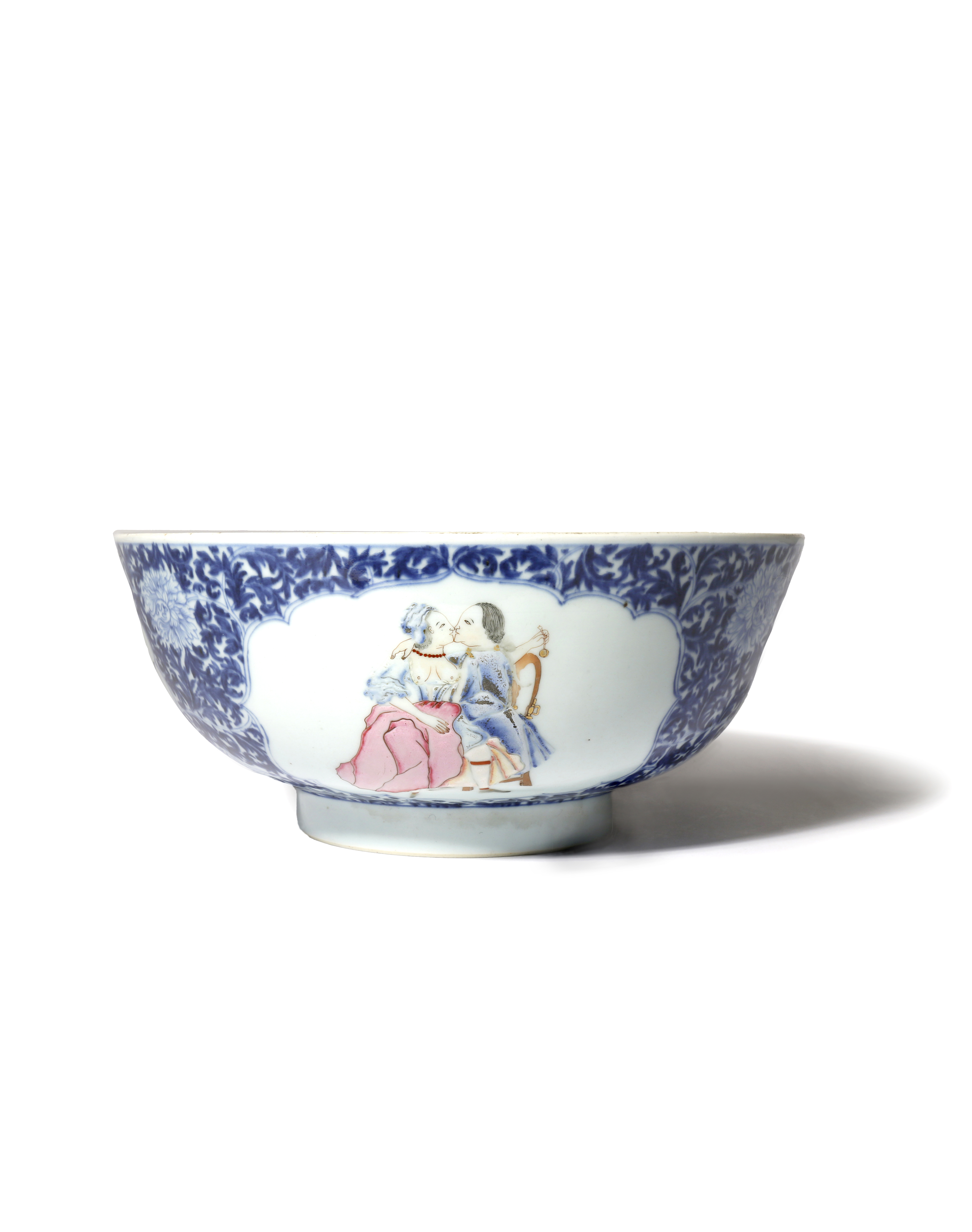 A CHINESE FAMILLE ROSE EROTIC EUROPEAN SUBJECT BOWL