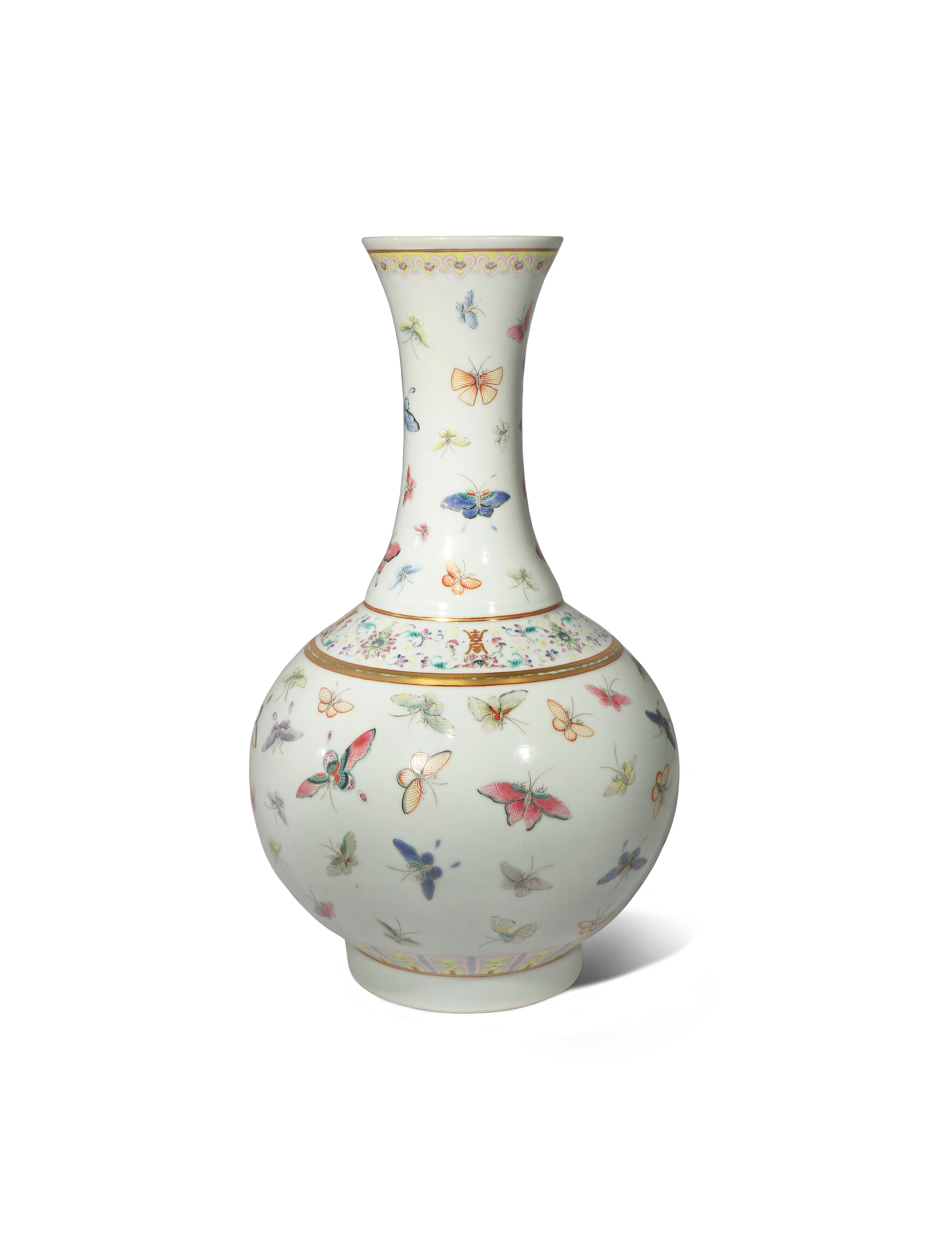 A CHINESE FAMILLE ROSE 'BUTTERFLY' BOTTLE VASE
