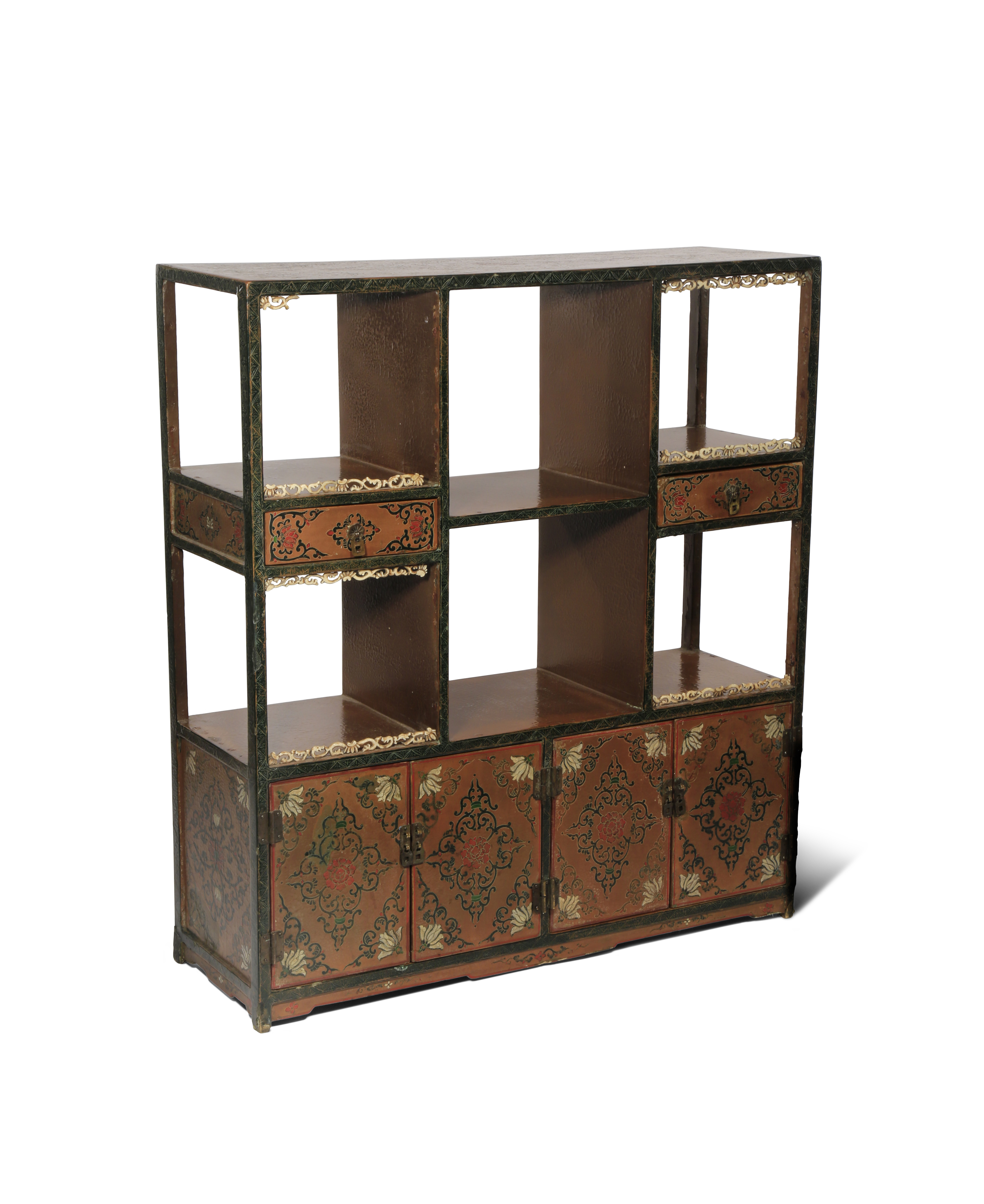 A SMALL CHINESE POLYCHROME LACQUER DISPLAY CABINET 18TH CENTURY The upper section divided into...