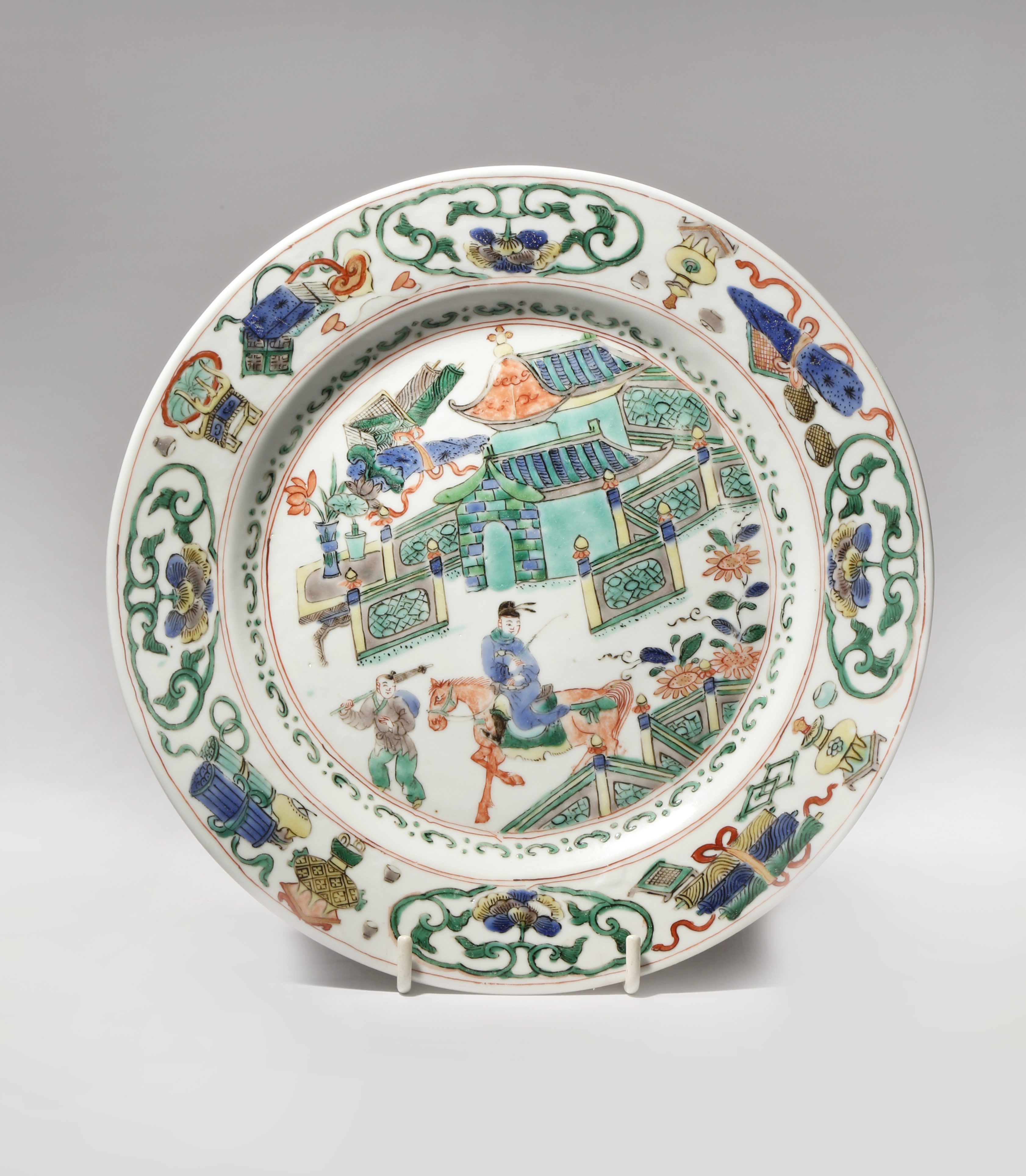 A CHINESE FAMILLE VERTE PLATE KANGXI 1662-1722 Depicting Zhang Shen from The Romance of the...