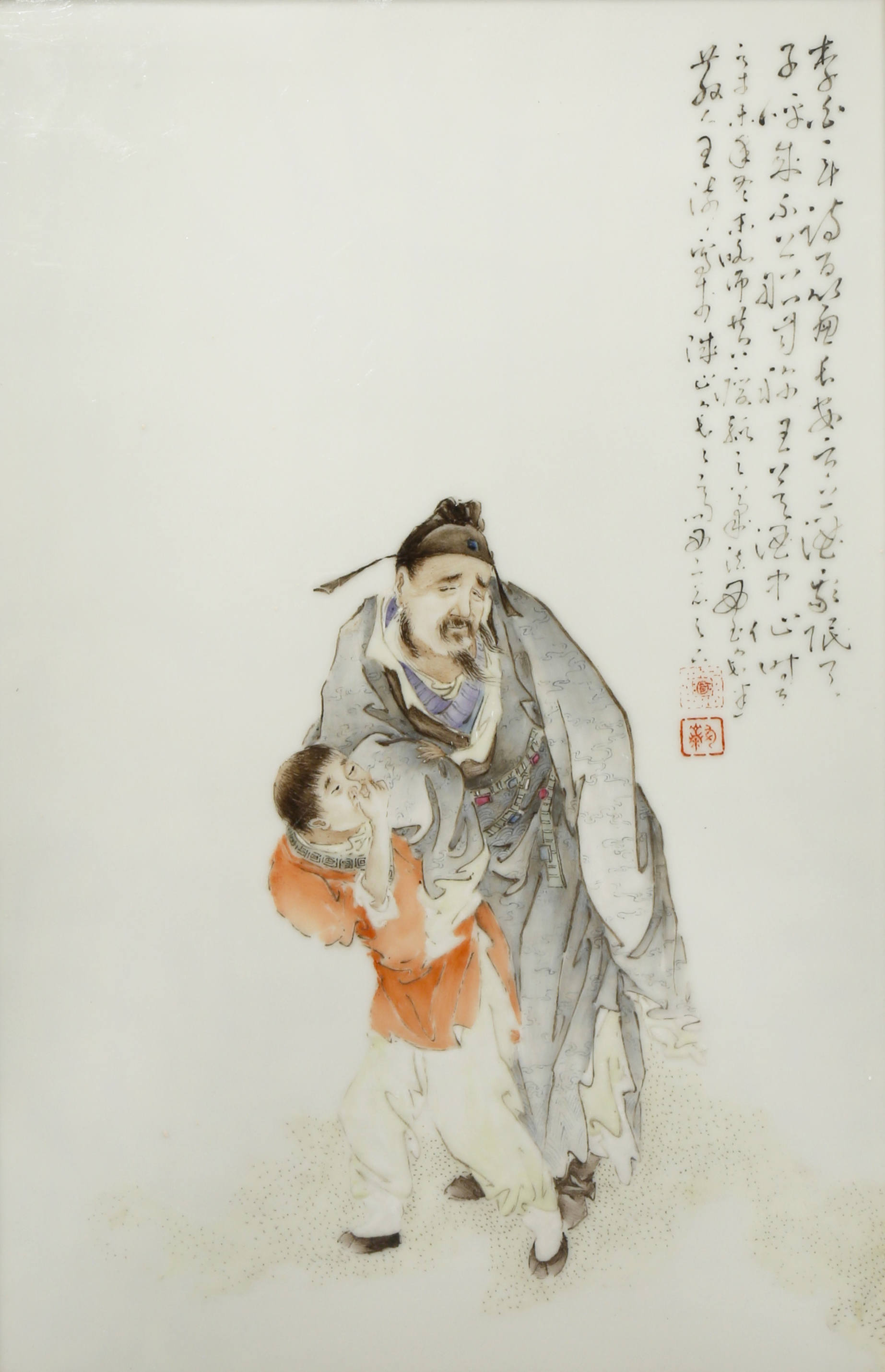 TWO CHINESE PORCELAIN PLAQUES 20TH CENTURY One depicting a boy and an official