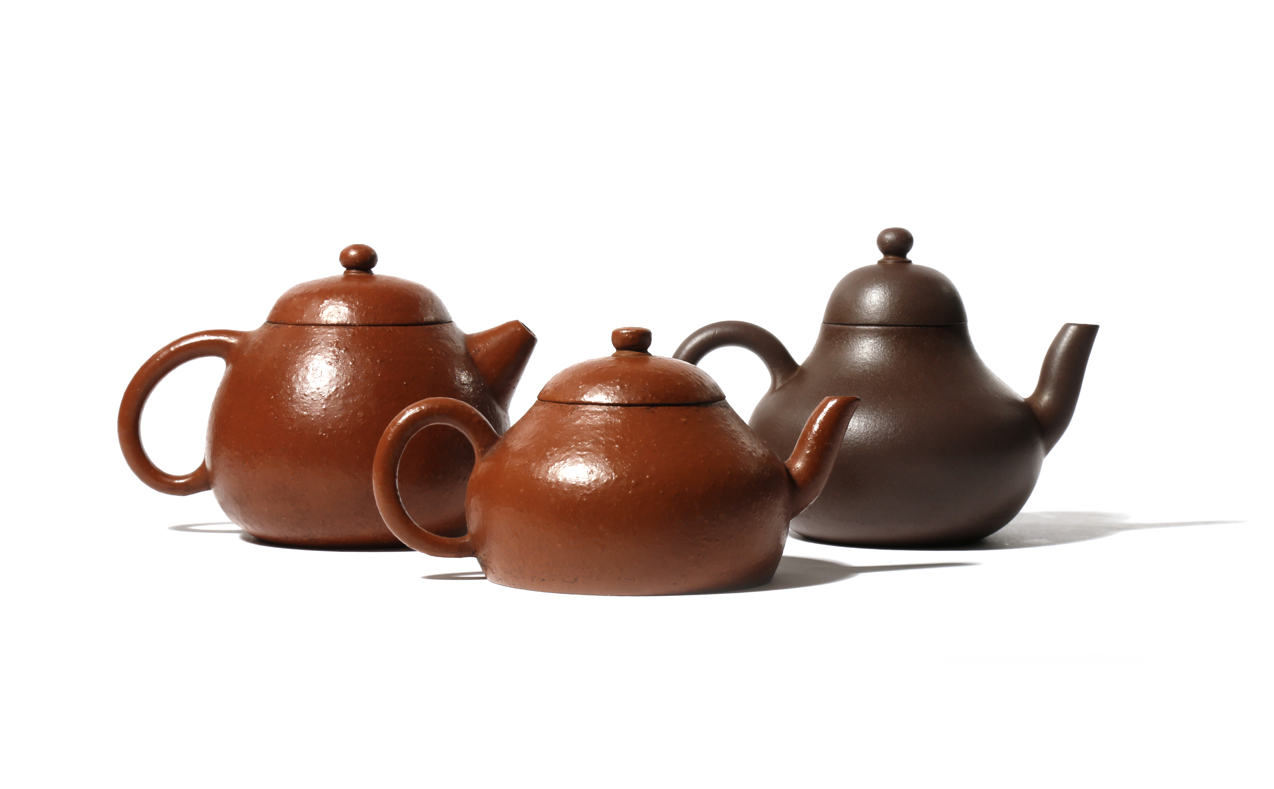 THREE CHINESE YIXING TEAPOTS AND COVERS