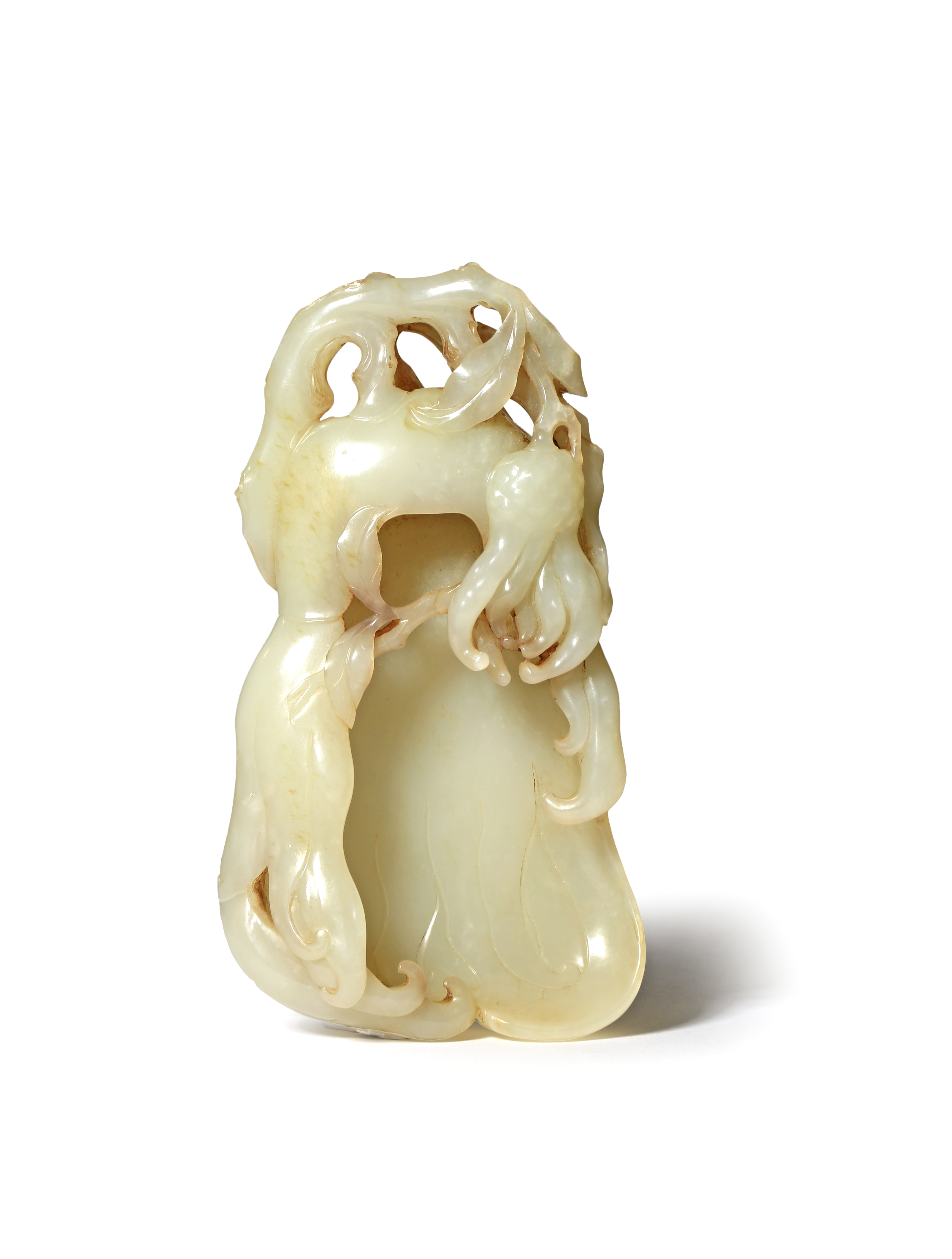 A CHINESE PALE CELADON JADE 'FINGER CITRON' BRUSH WASHER QING DYNASTY OR LATER Formed as a large...
