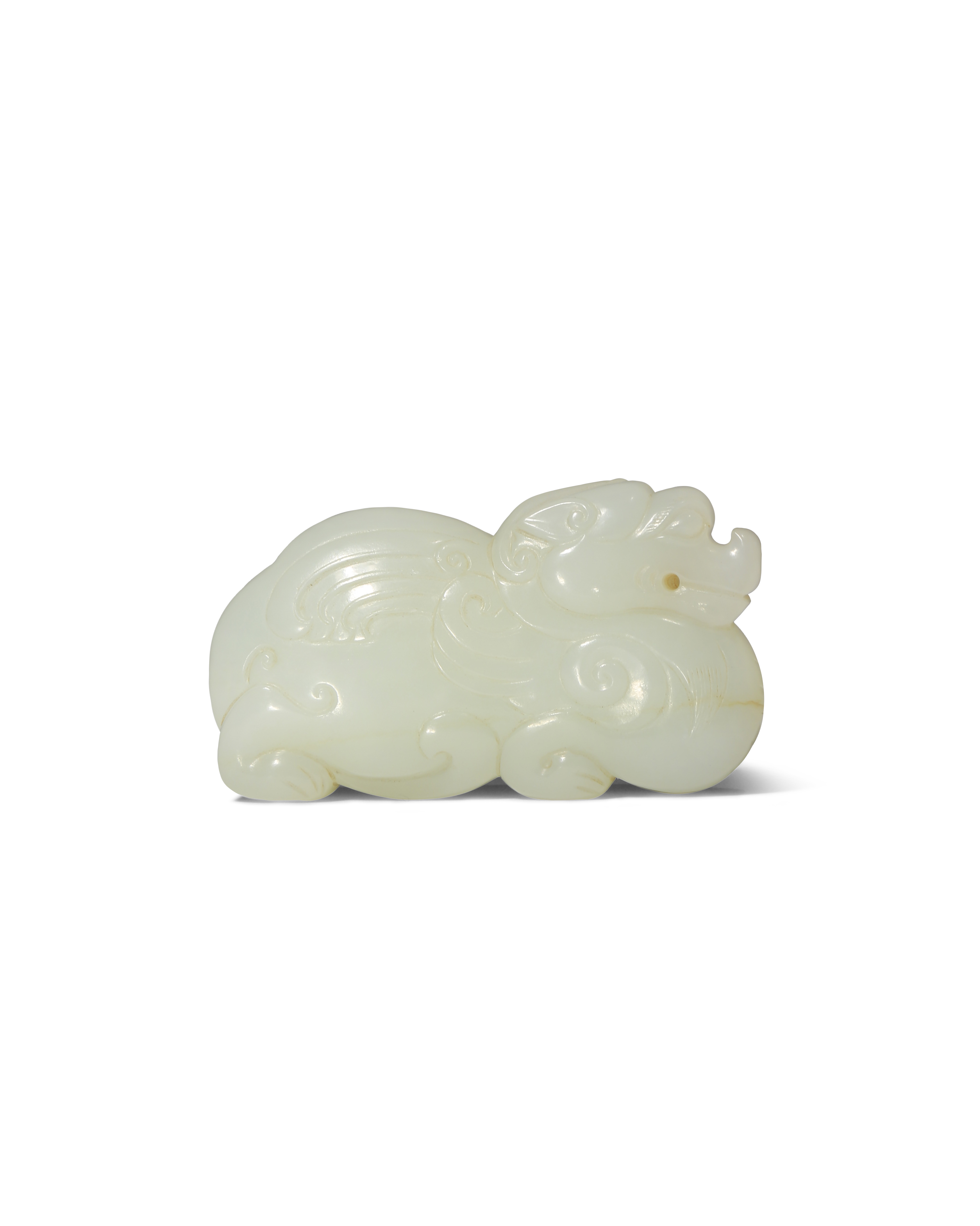 A CHINESE WHITE JADE 'BIXIE' PENDANT QING DYNASTY OR LATER The two-horned mythical beast depicted...