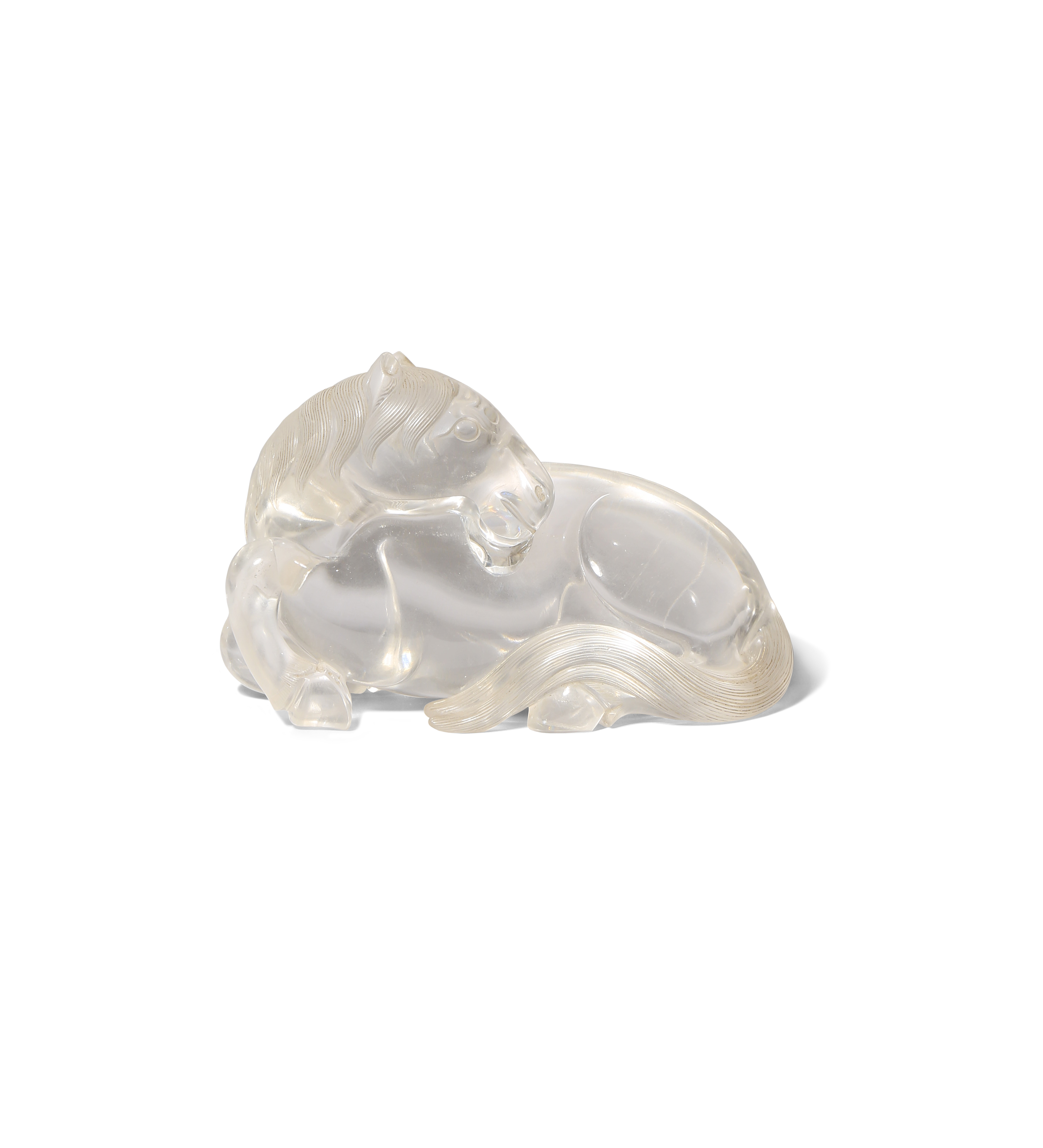 A CHINESE ROCK CRYSTAL CARVING OF A HORSE QING DYNASTY Depicted in a recumbent pose gazing backwards