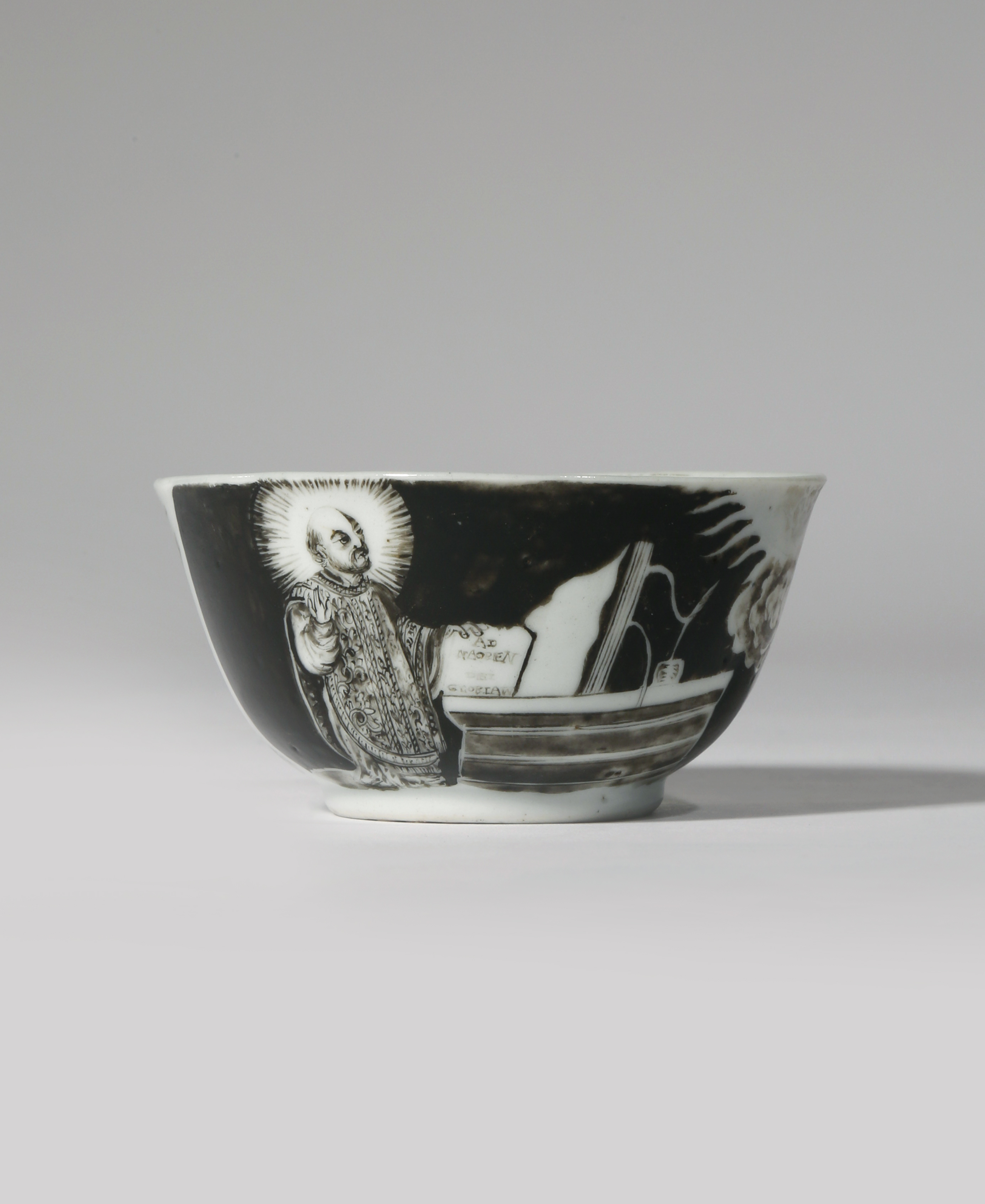 A RARE CHINESE EN GRISAILLE 'ST IGNATIUS LOYOLA' TEA BOWL