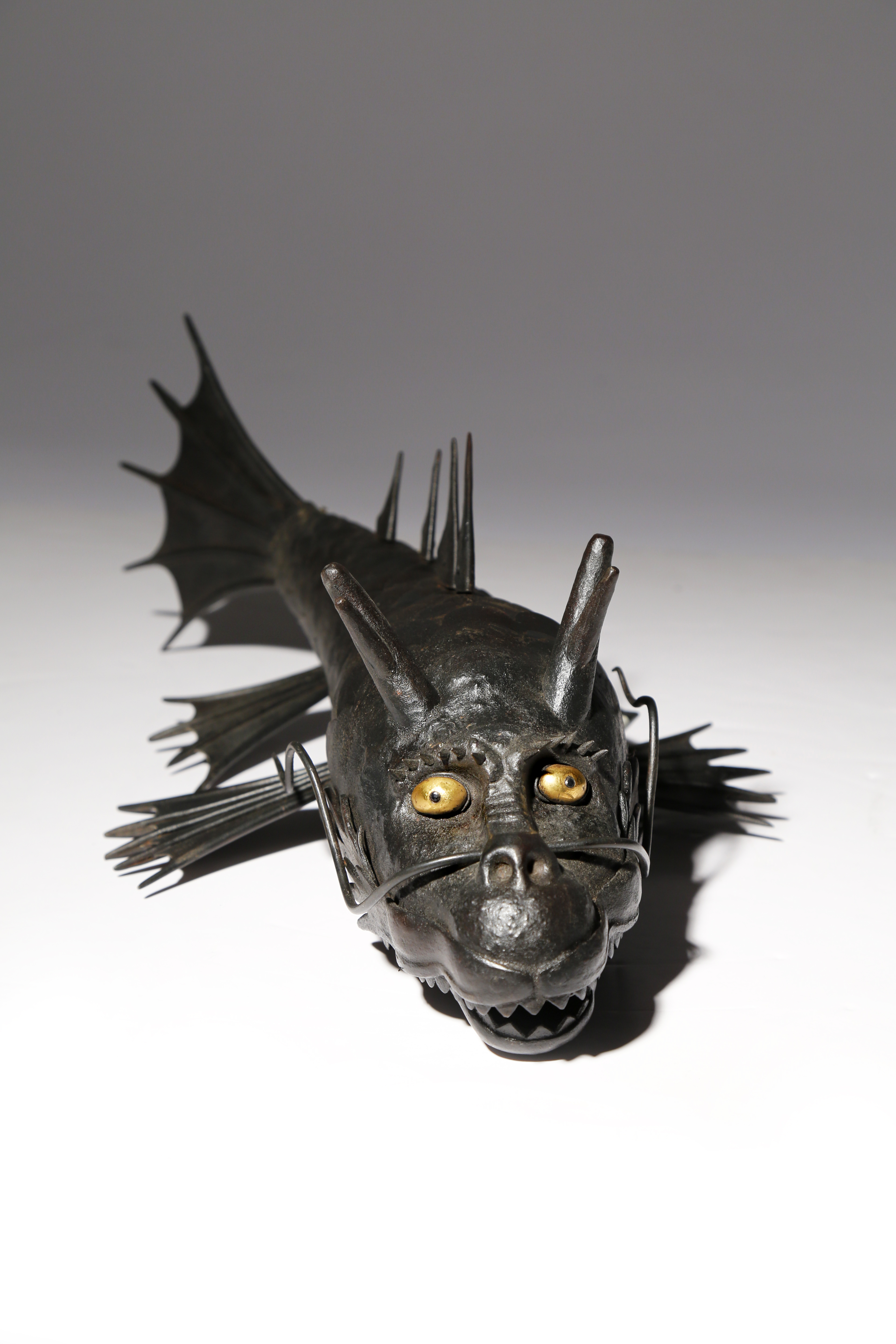 A JAPANESE ARTICULATED IRON MODEL OF A DRAGON FISH OR SHACHIHOKO