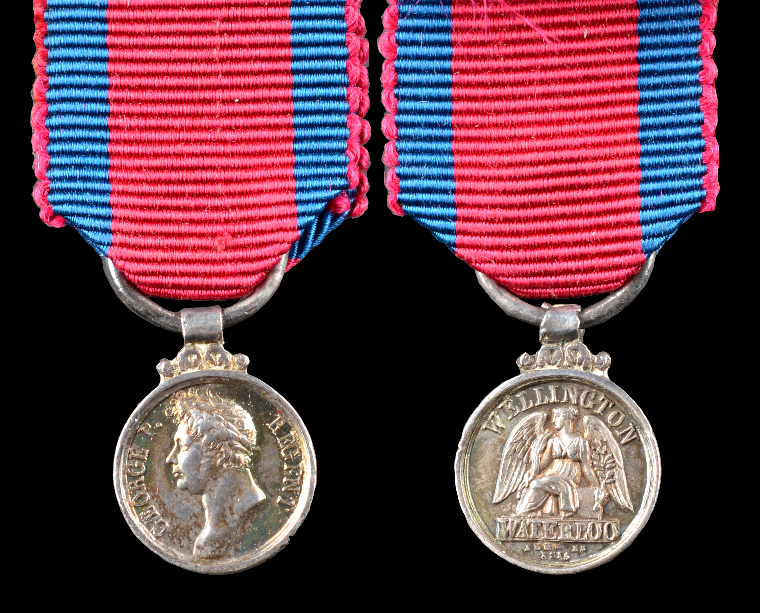 A miniature Waterloo Medal, of 'continental' size, suspended from a ring by a scrolling lug, diameter 11 mm, extremely fine.