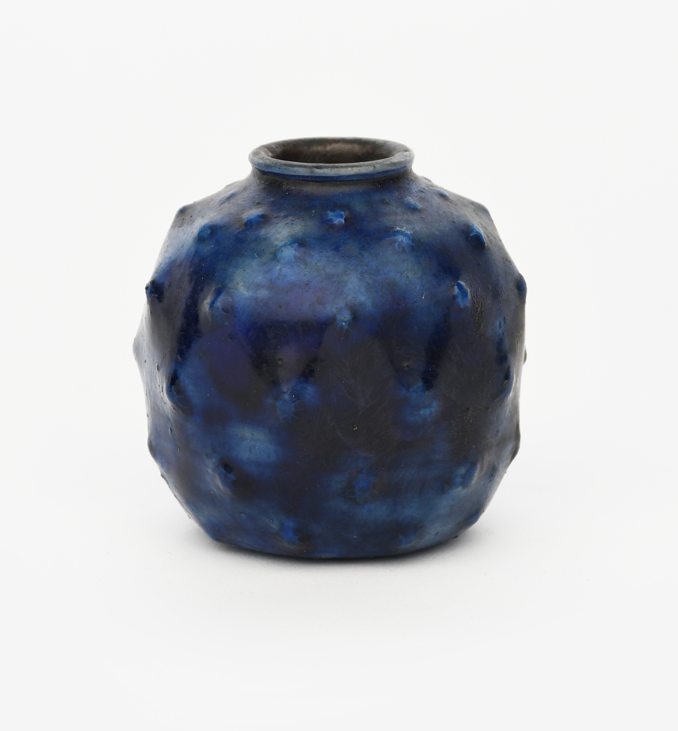 A Martin Brothers stoneware gourd vase by Edwin and Walter Martin, dated 1913, shouldered ovoid form, modelled in relief with warts, glazed blue incised 6-1913, Martin Bros, London & Southall 7cm. high