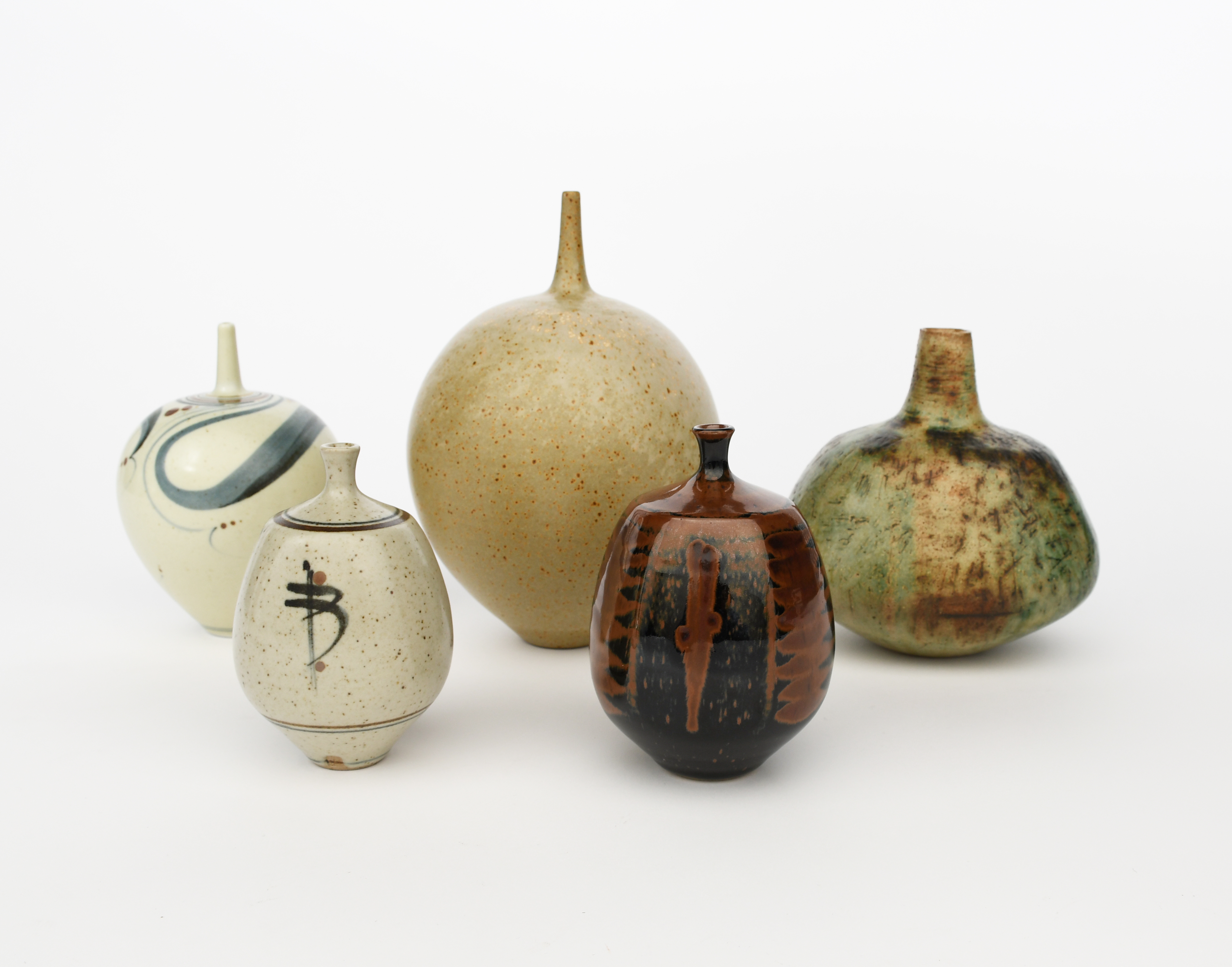 Derek Clarkson (born 1928) a porcelain vase with solifleur neck