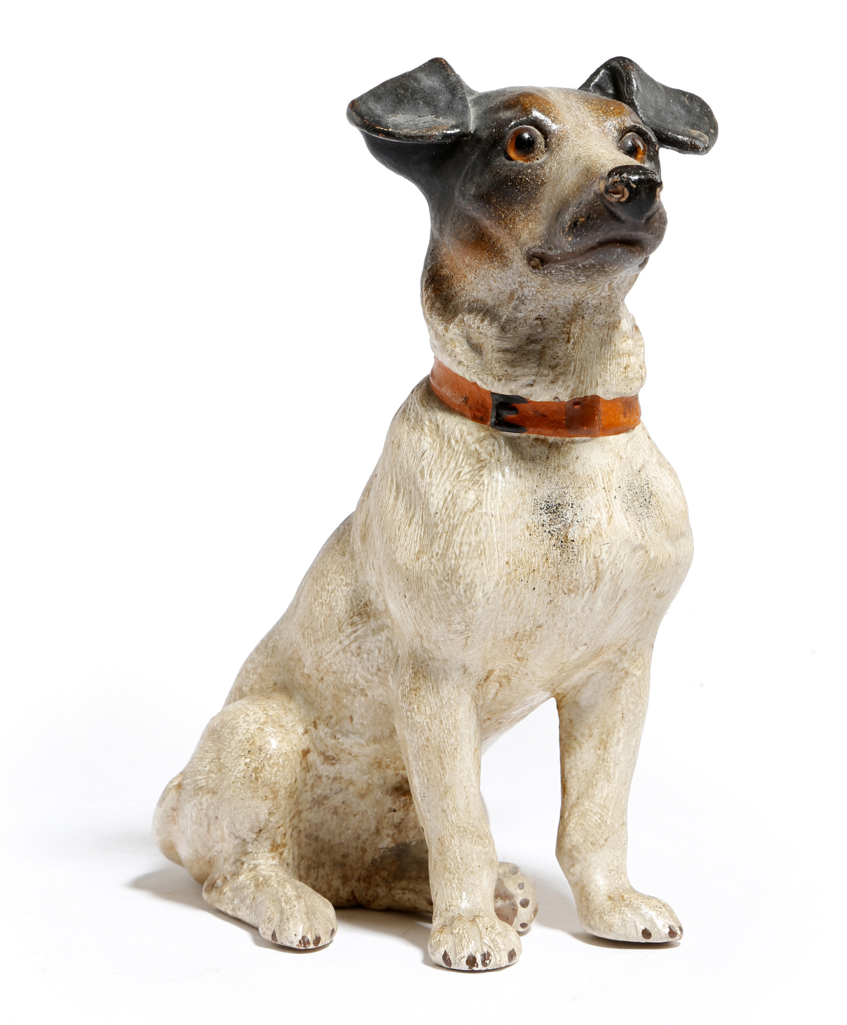 A German polychrome painted terracotta model of a seated jack russel terrier
