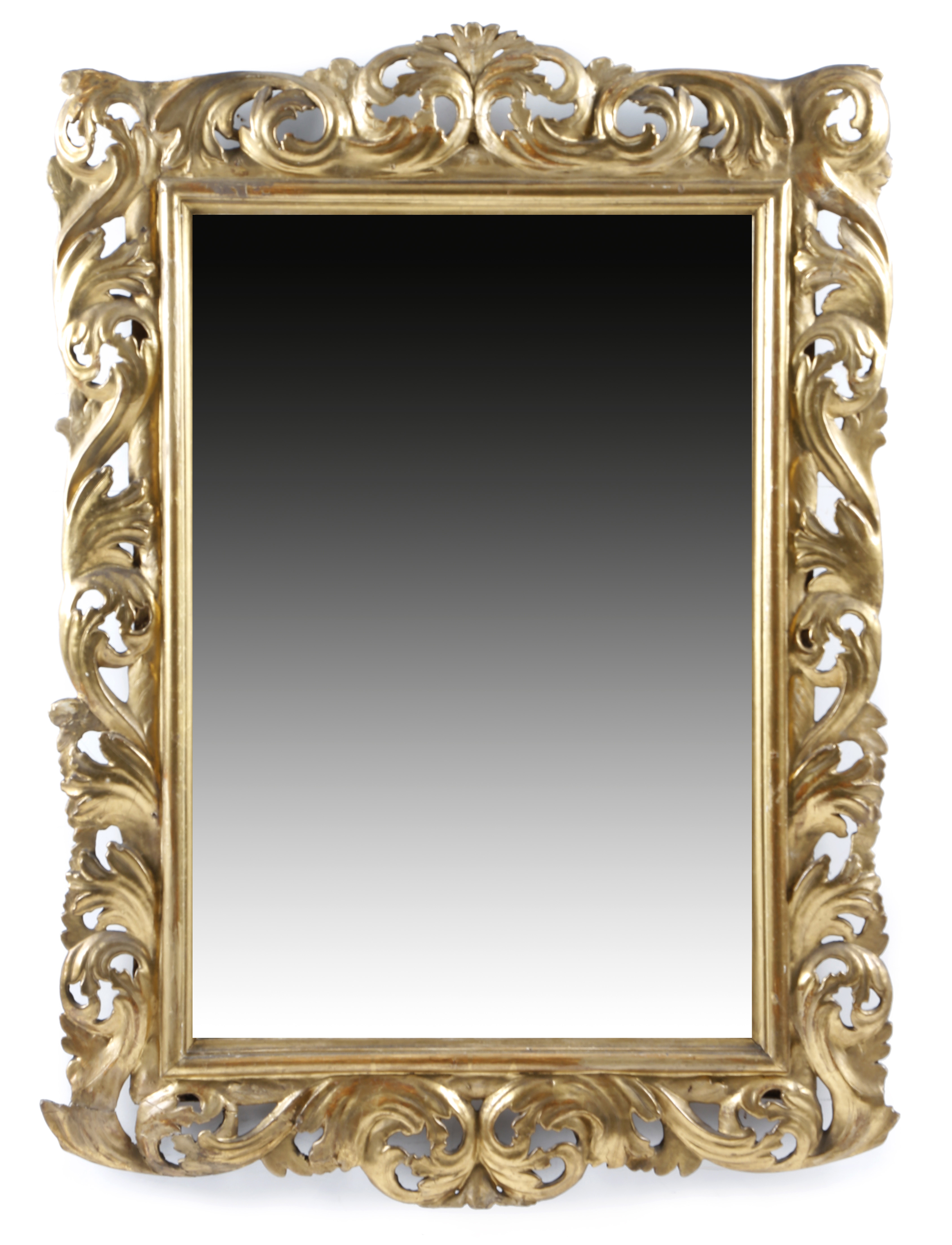 A 19th century Italian Florentine giltwood wall mirror, the later rectangular plate with a pierced scrolling leaf frame, 110 x 78cm.