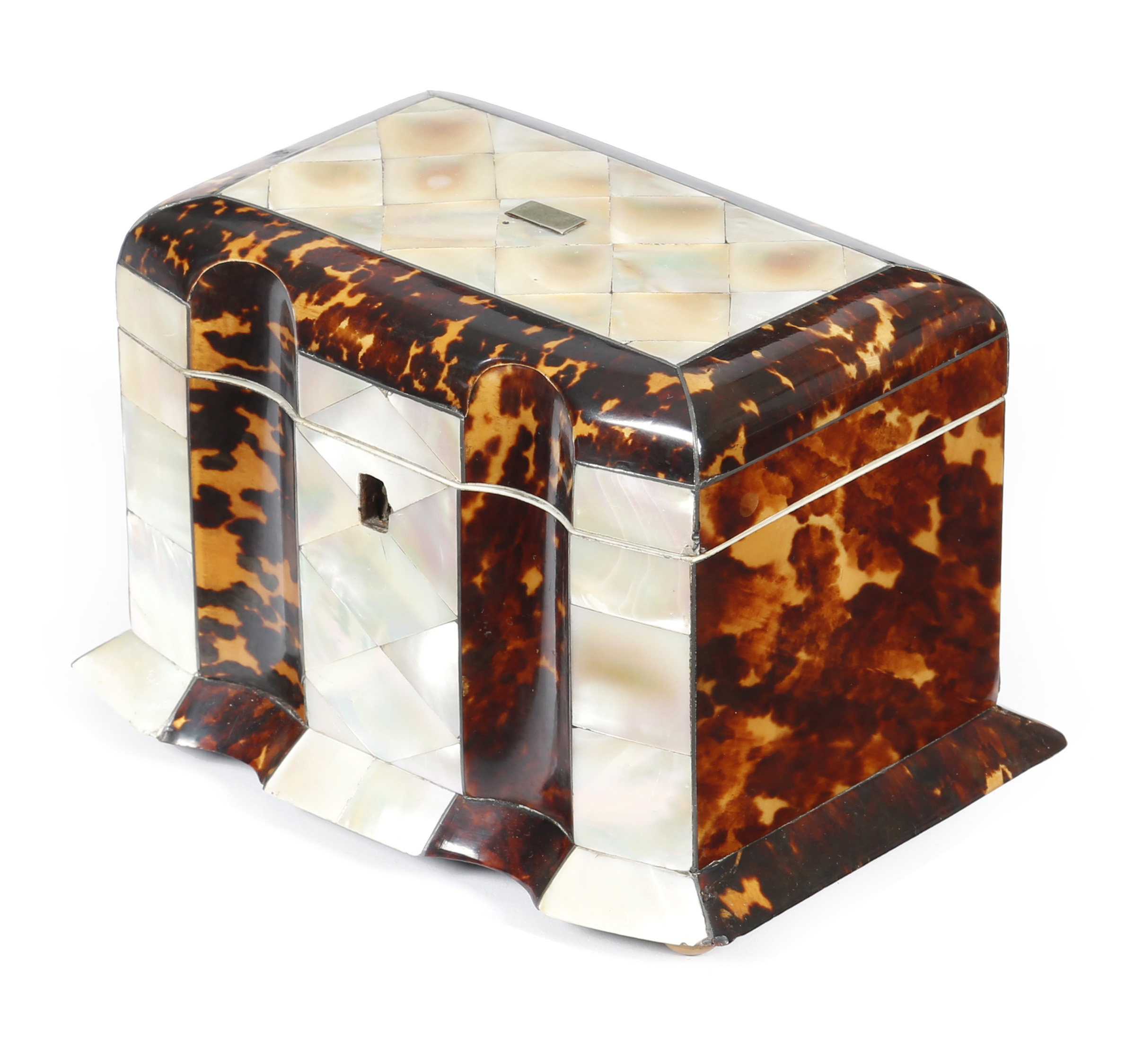 λ An early Victorian tortoiseshell and mother of pearl tea caddy