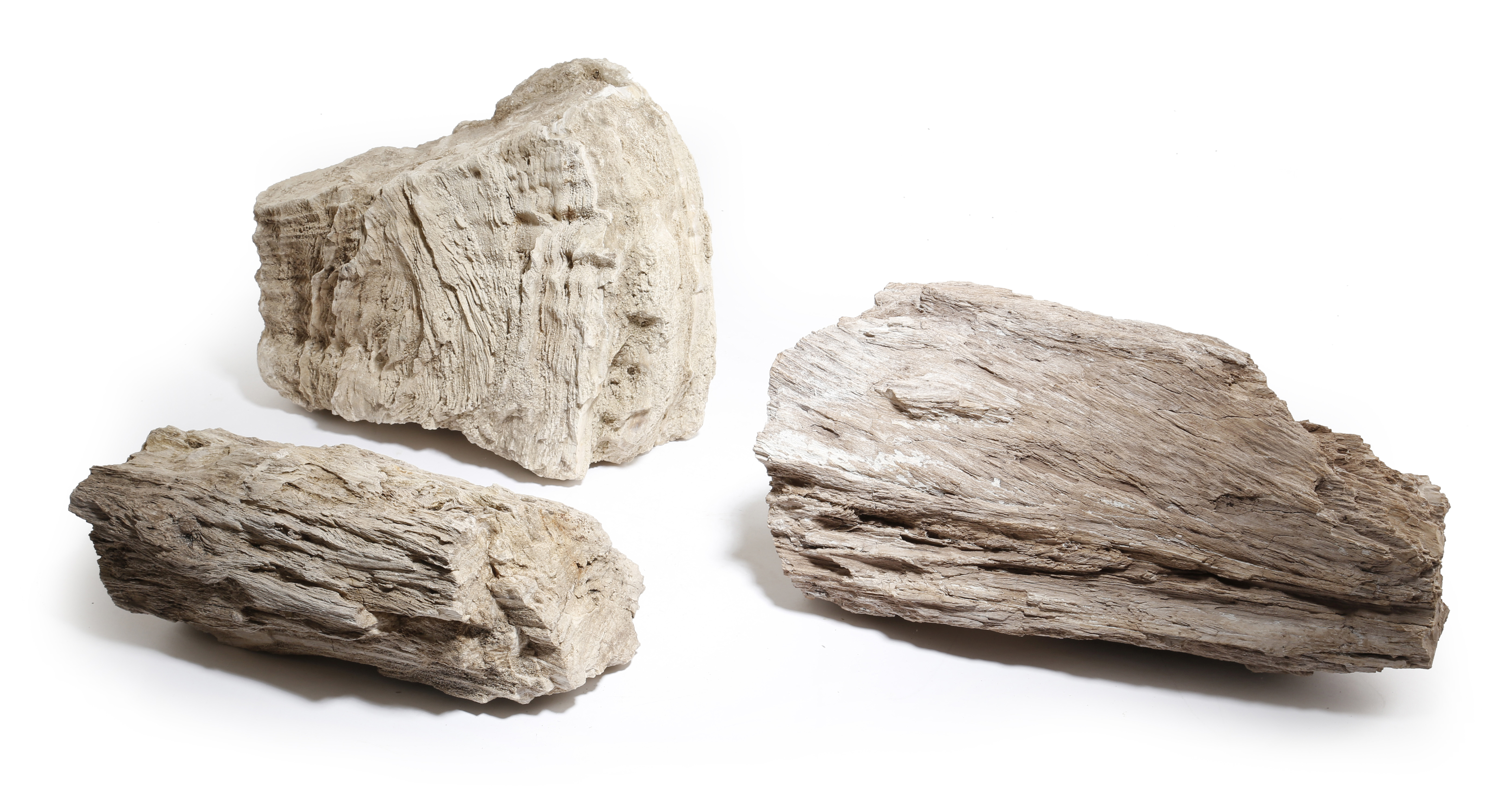 Three Jurassic coast petrified cypress wood specimens, Protocupressinoxylon purbeckensis, Upper Jurassic, 145 million years old, Jurassic Coast, Dorset, 36.7cm high (max). (3)