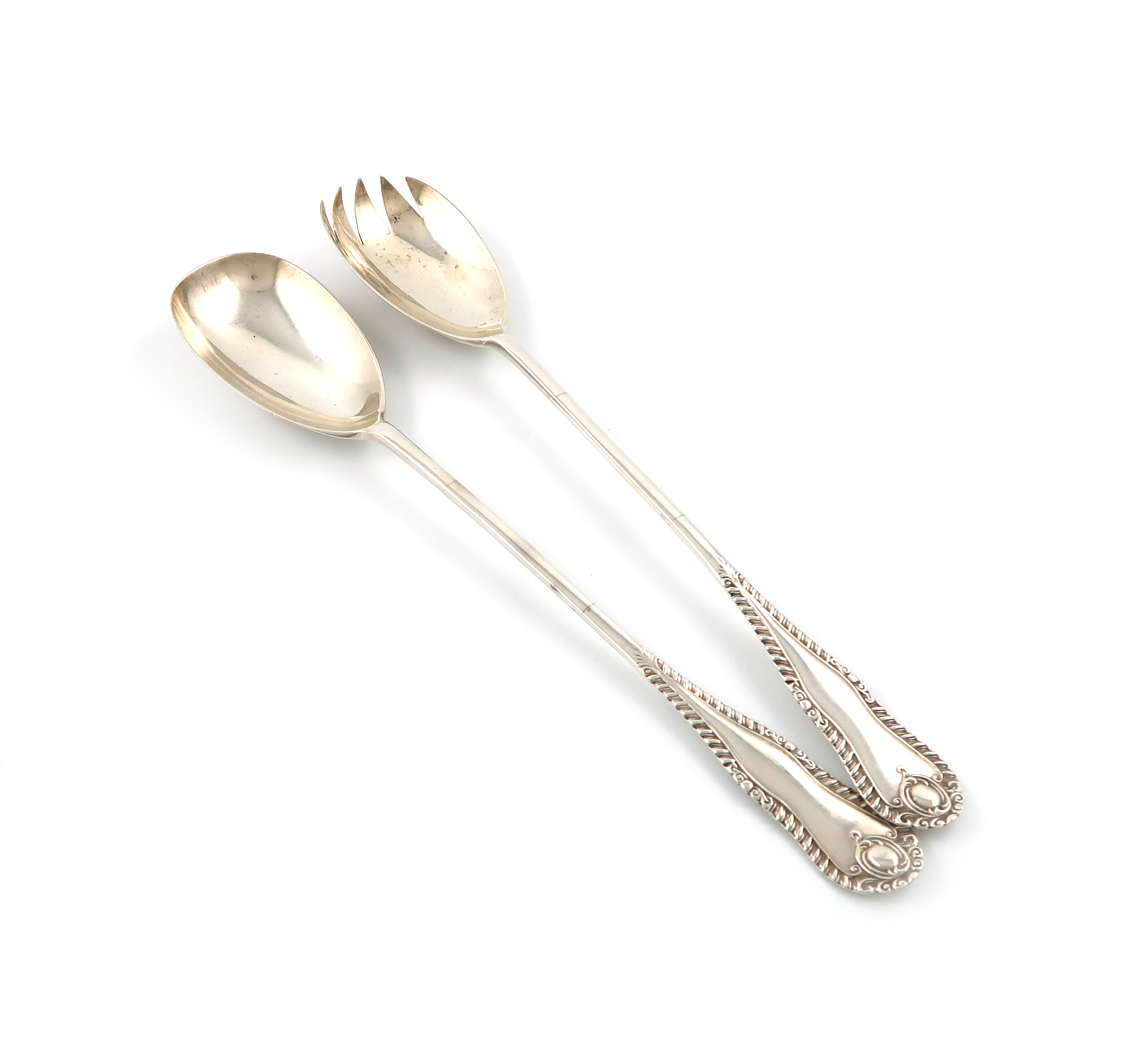 A pair of Edwardian silver Gadroon pattern salad servers,