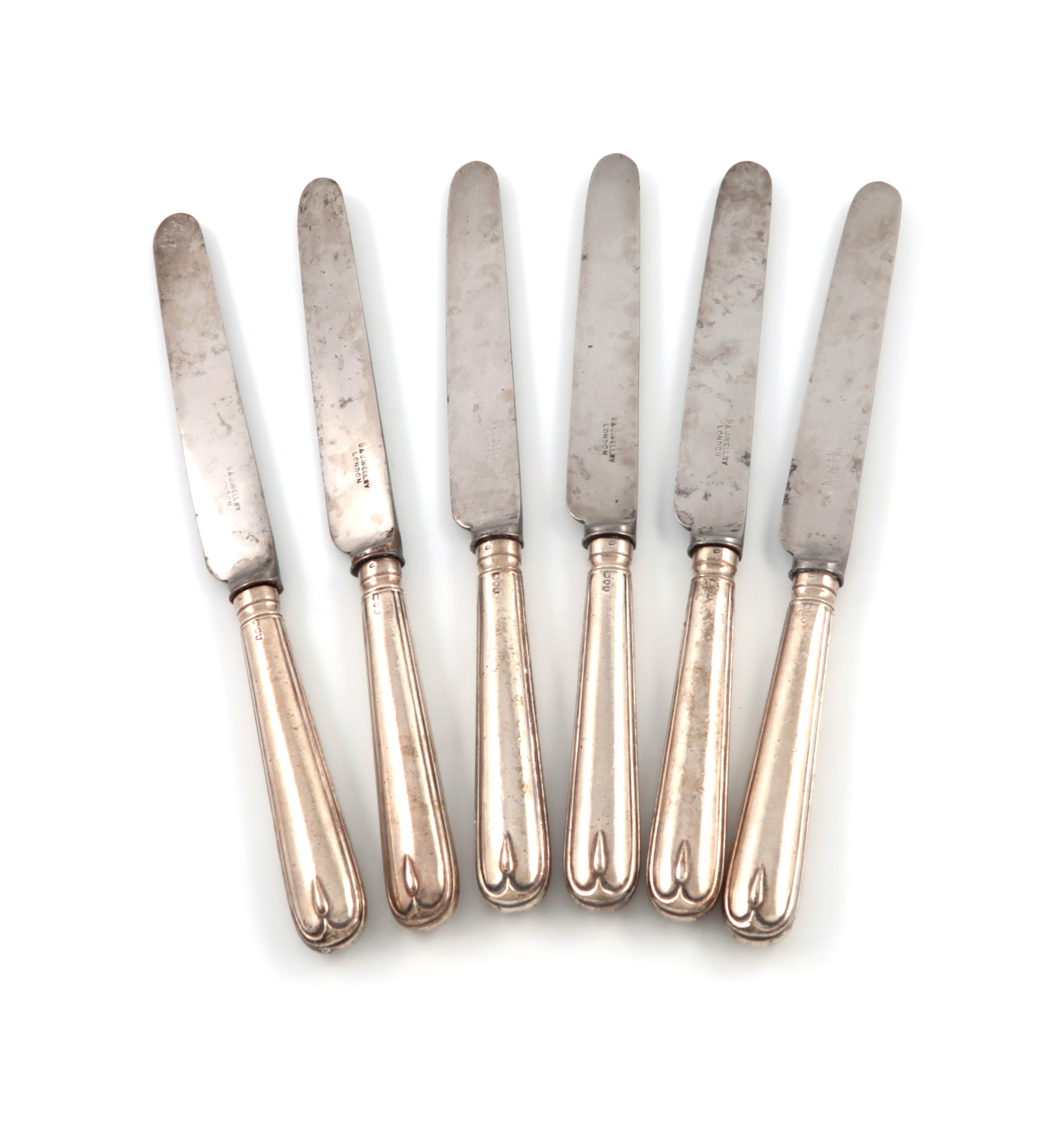 A set of six Victorian silver Hanoverian Thread and Drop pattern table knives