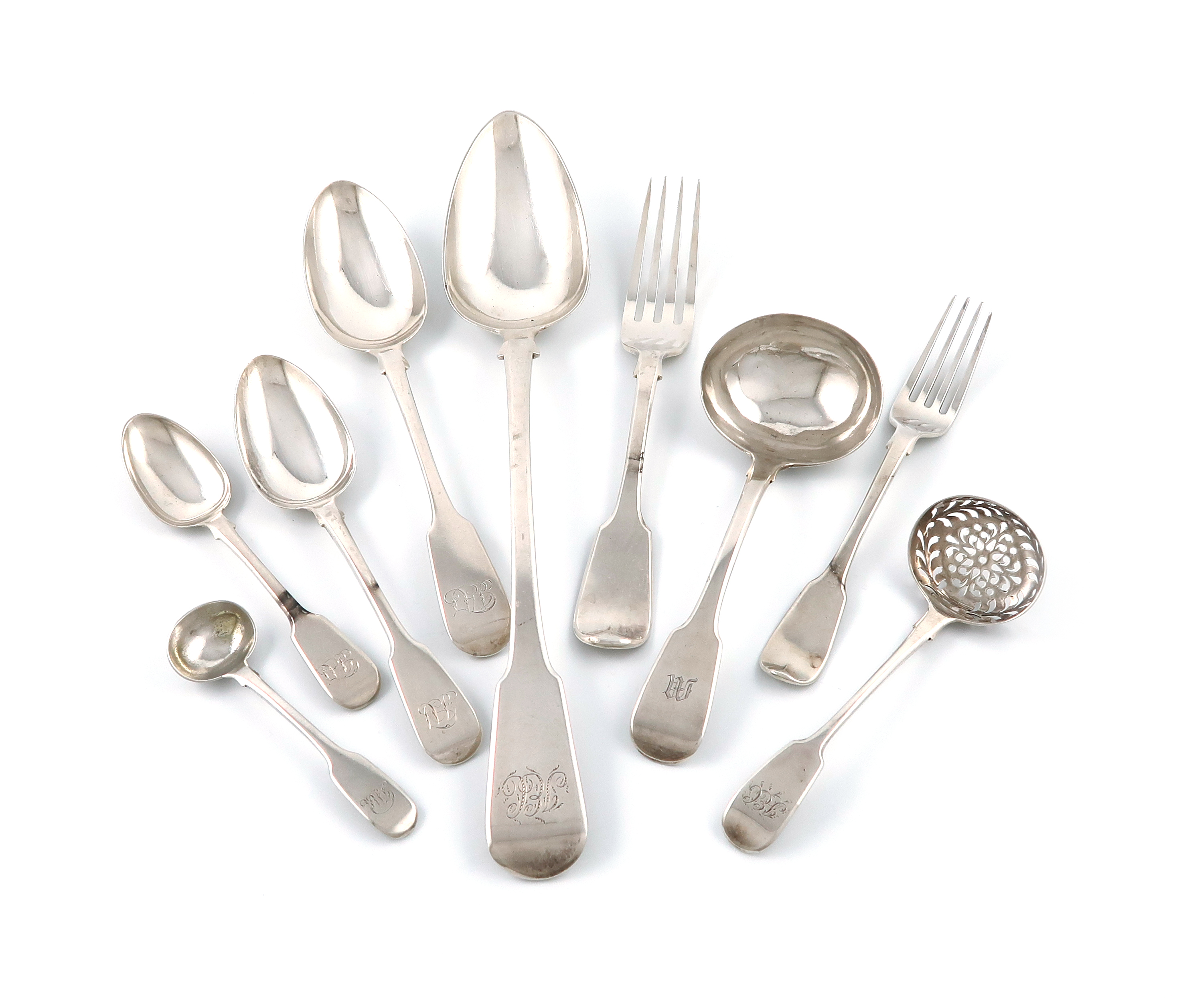A collection of George IV-Victorian silver Fiddle pattern flatware,