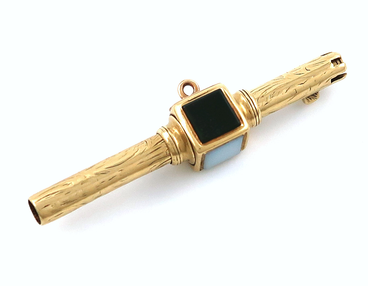 A Victorian novelty gold slide-action pencil, Bramah key and watch winder,