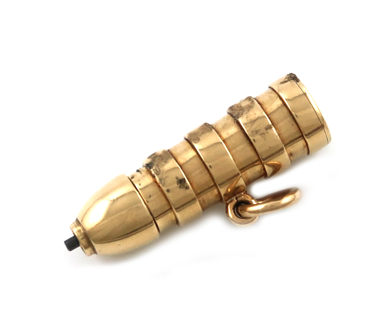 modelled as a Palliser bullet, with a ring attachment, length closed 3.5cm.