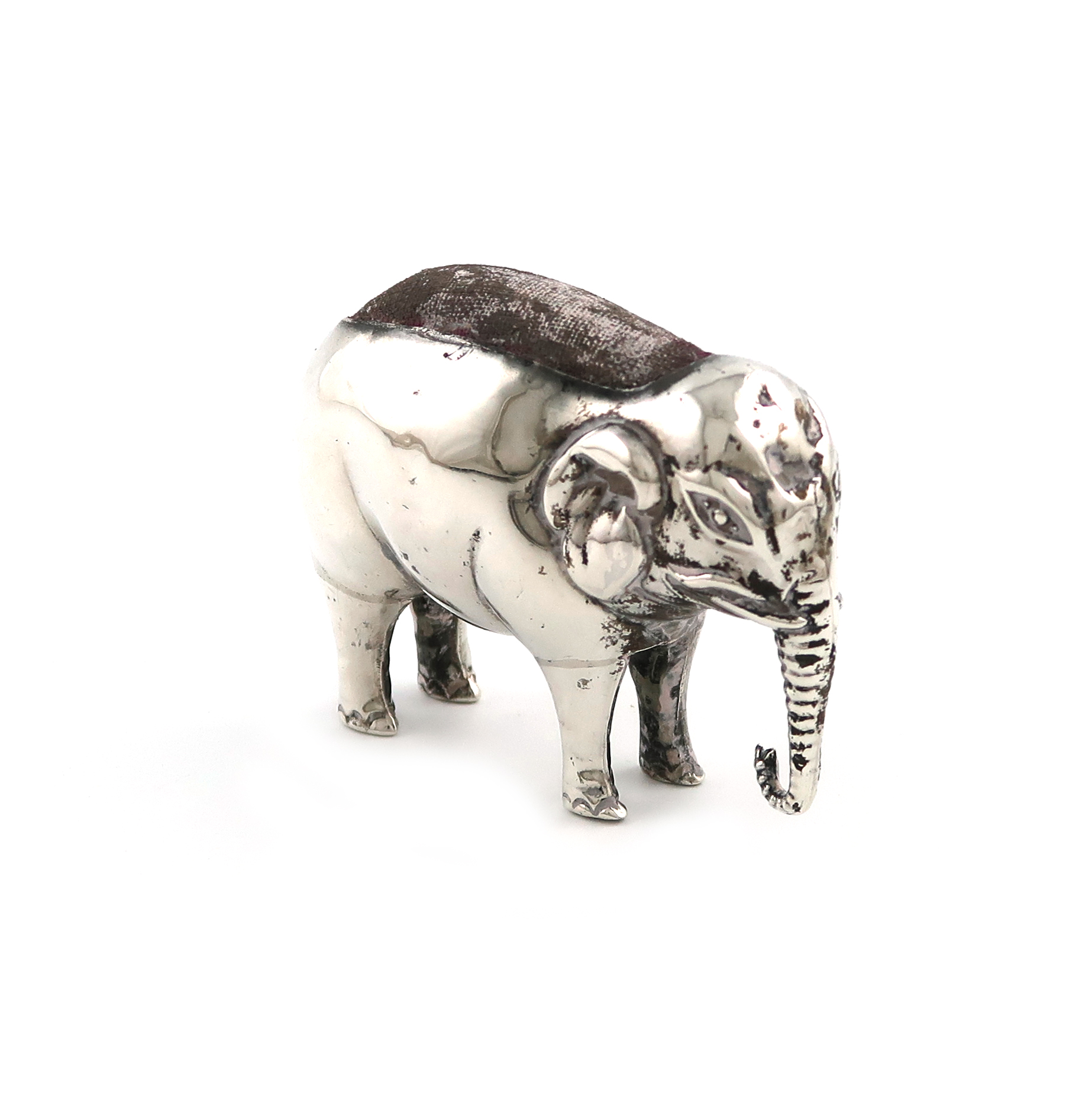 An Edwardian novelty silver elephant pin cushion
